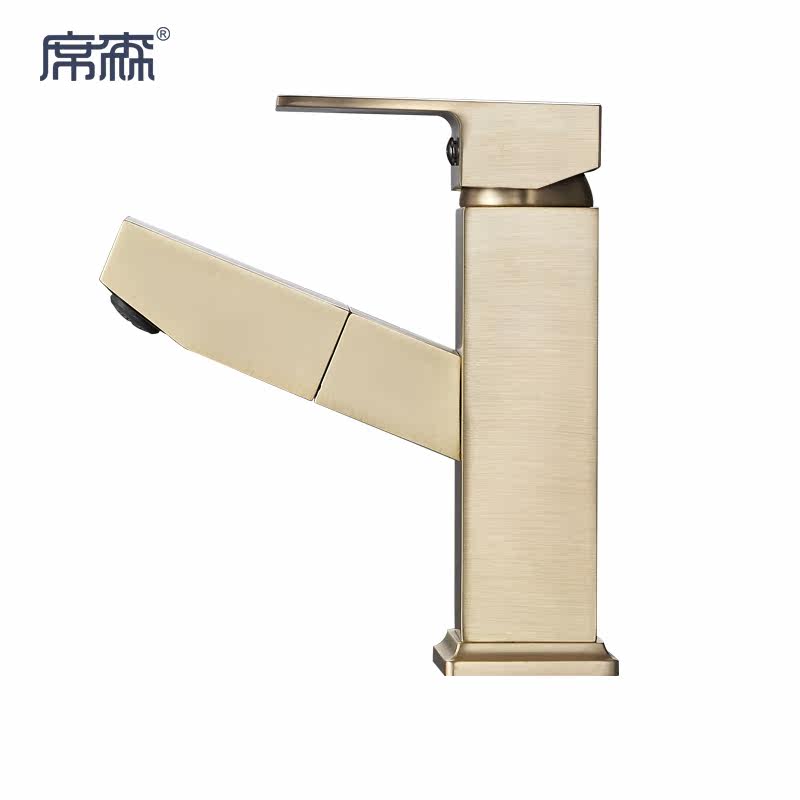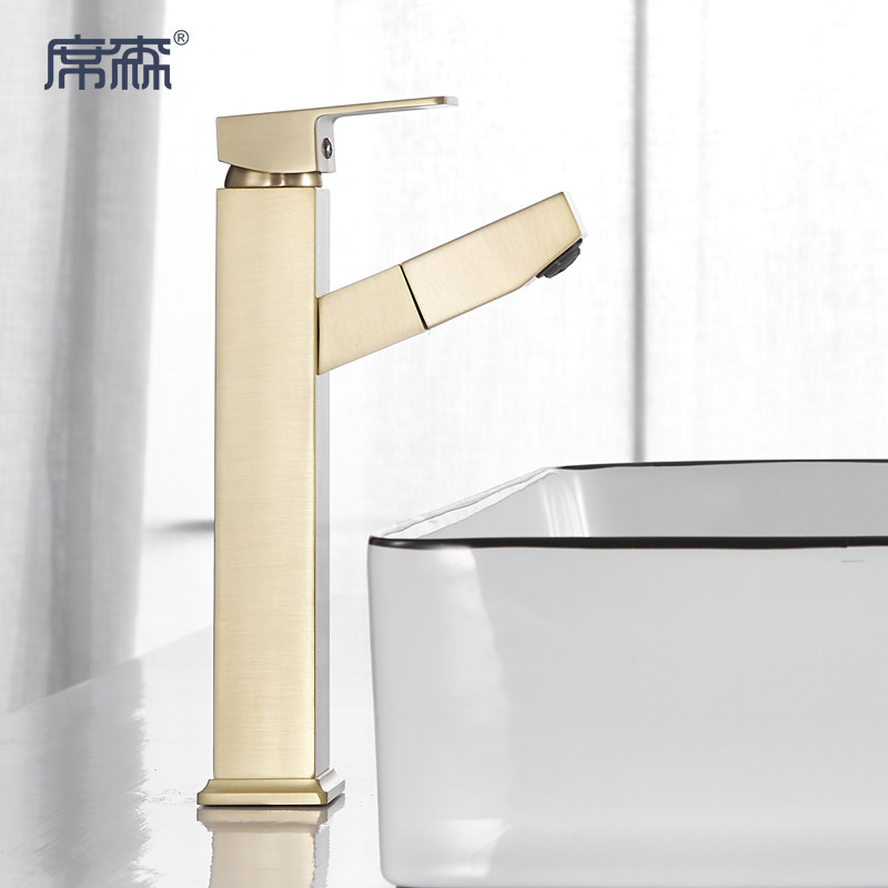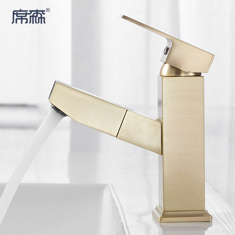 Brass wire drawing pull-out tap hot and cold washbasin home dressing room surface basin telescopic full copper tap gold