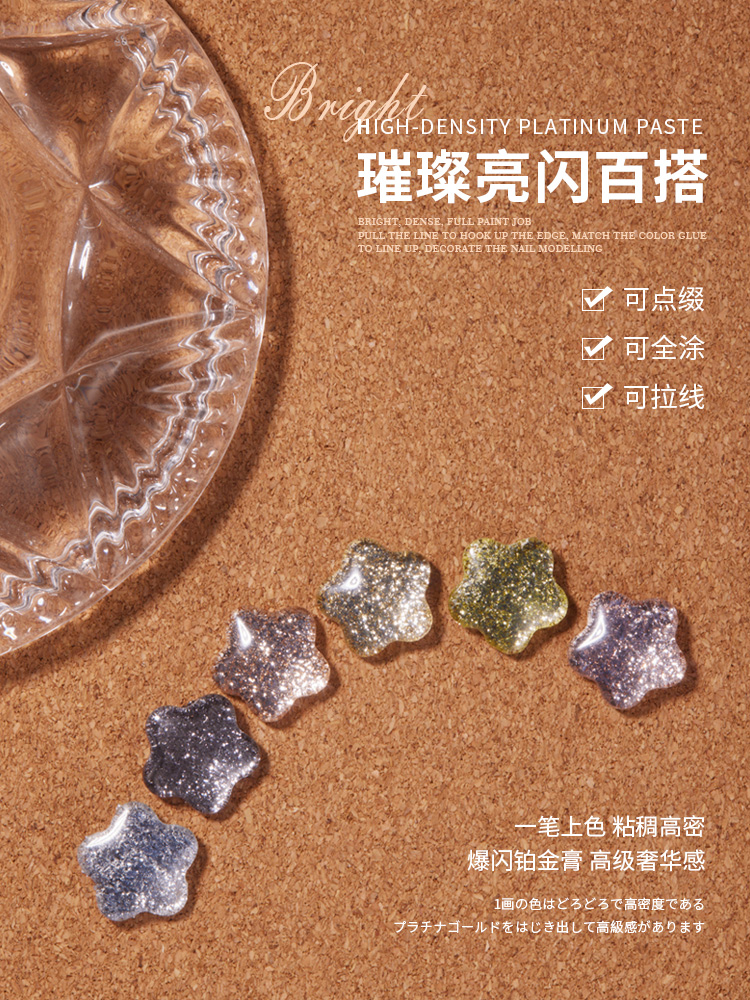 2021 new ek flashing stars high-density platinum paste gold and silver Japanese-style drawable line painted manicure shop glue