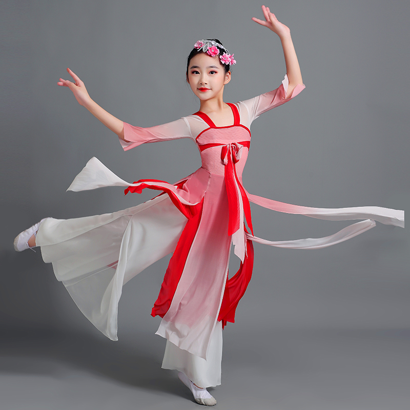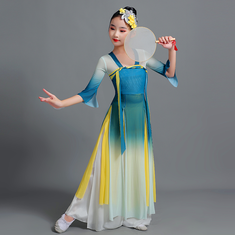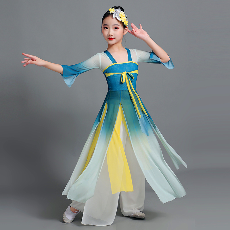 Children's Classical Dance Out of the Comfort China Wind Dance Costumes Girl Ancient Wind Hanfu Performance Fan Dancer Dress