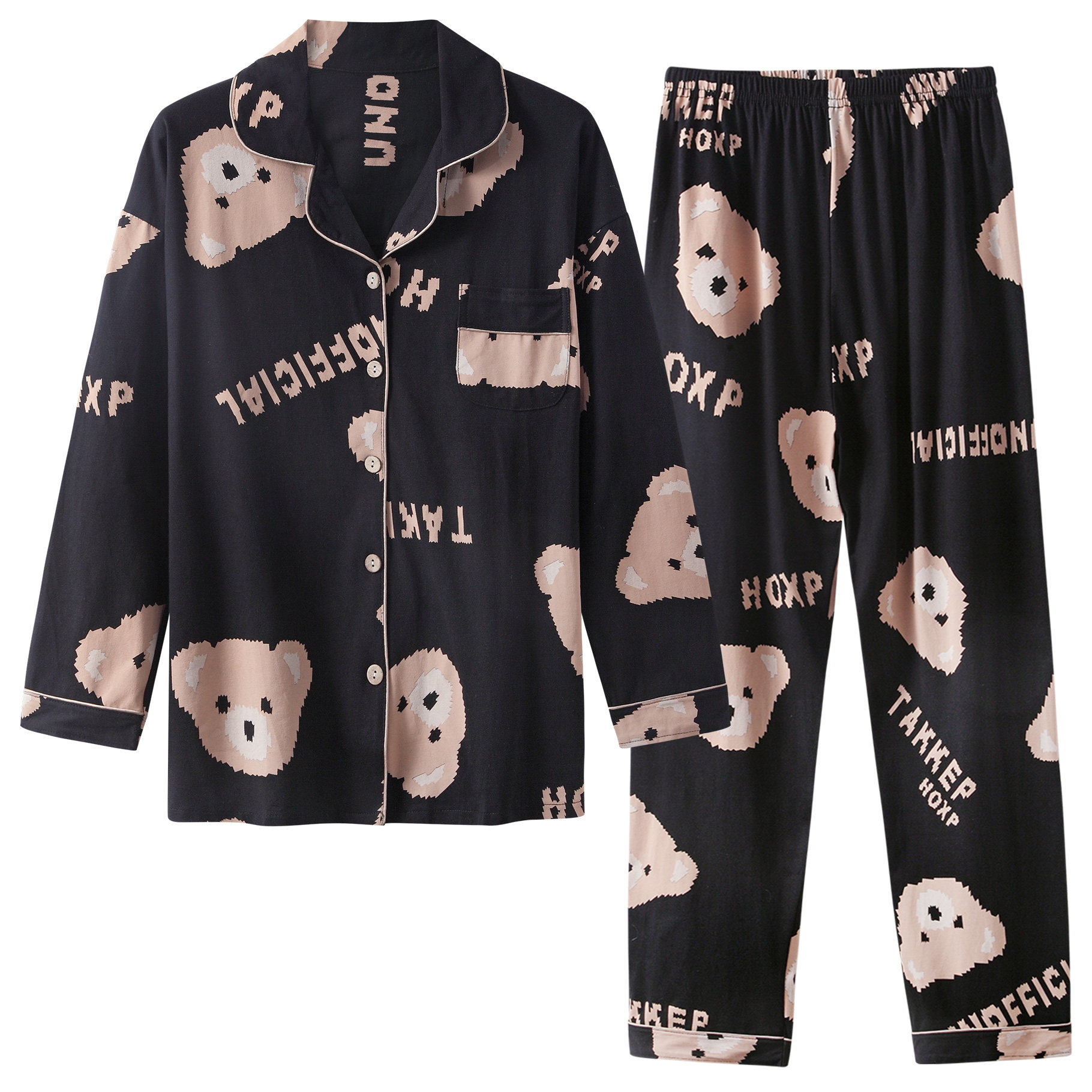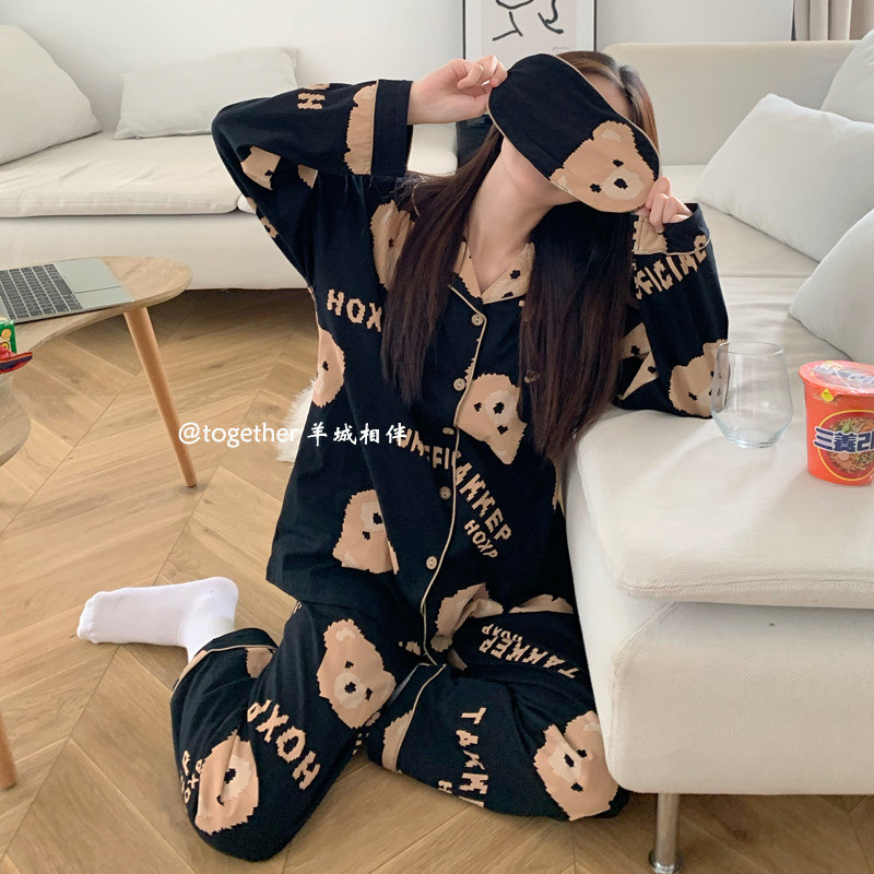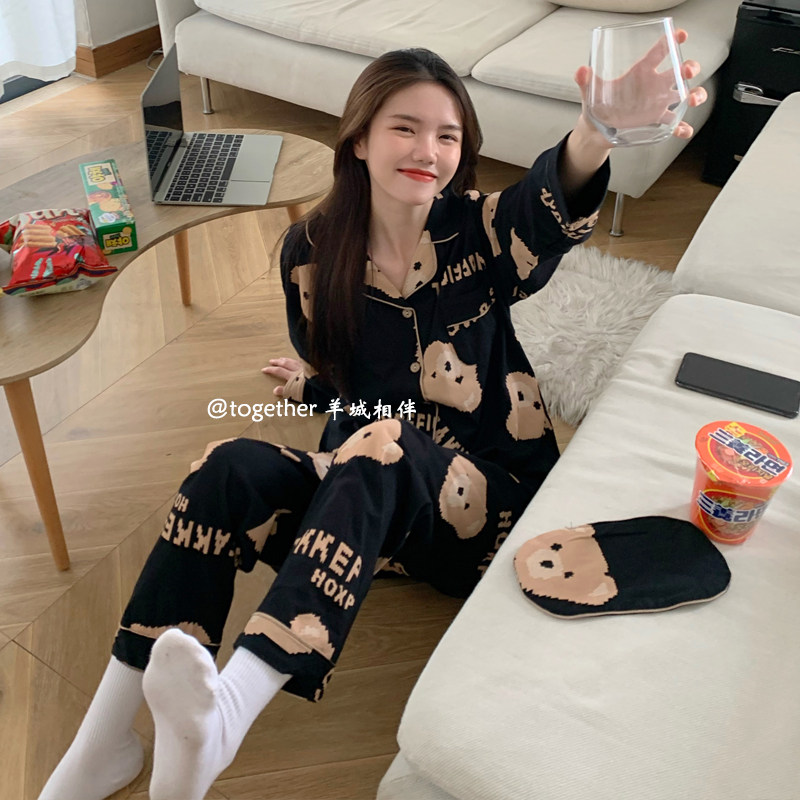 South Korean ins wind ~ soft cute bear babypyjamas spring autumn style pure cotton long sleeve cute couple turn over home ju clothes