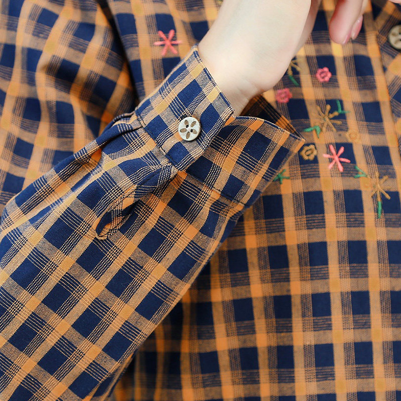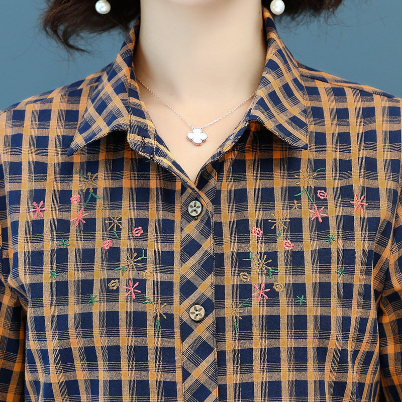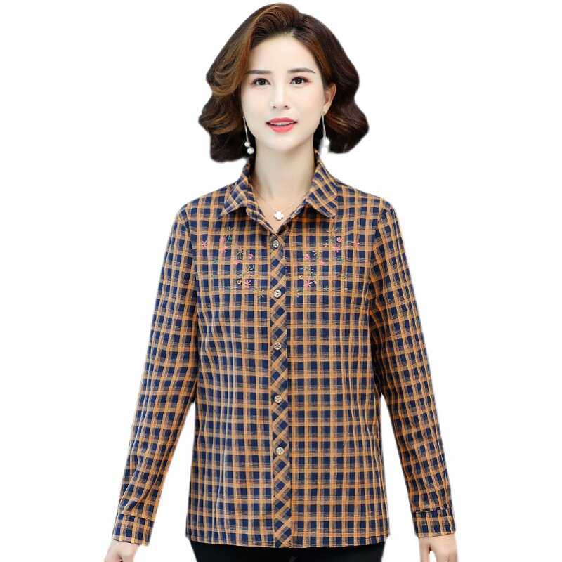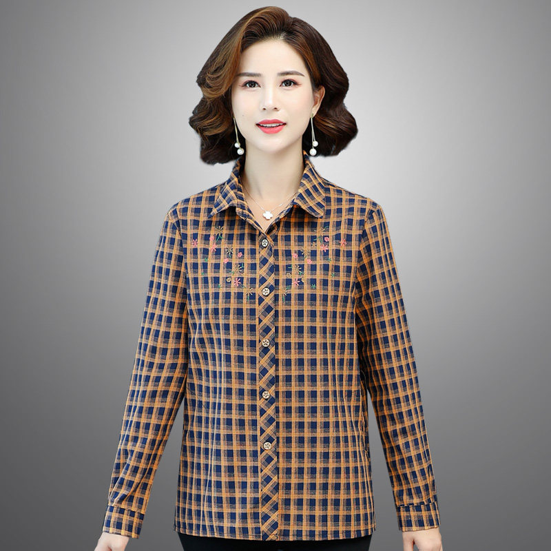 Middle Aged Long Sleeve Shirt Woman 100 hitch fashion Stylish Plaid Blouse Moms Dress Fall Middle-aged Woman Dress Shirt