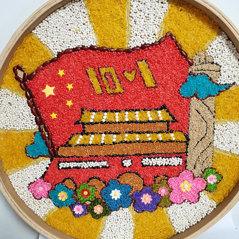 Five cereals Cereals Artisanal DIY Material Package Collage Grain Seed Painting Bamboo Screen Painting National Day Finished Patriotic Handmade-Taobao