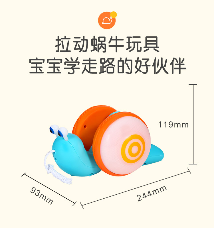 Lead rope snail vibrato same children's creative fiber rope lighting music pull cord drag pull baby toddler