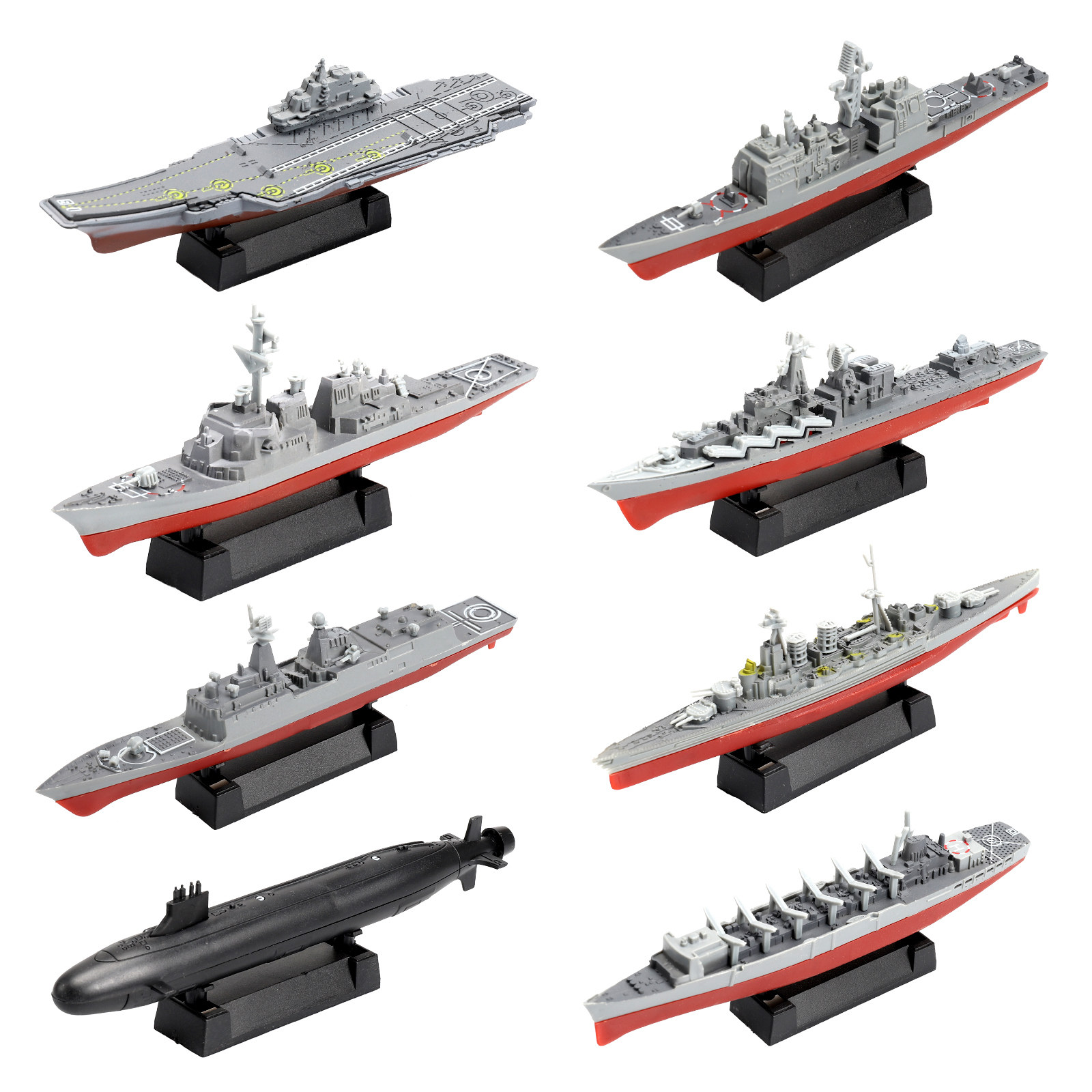 Pambest Military Model Warship Aircraft Carrier Model Liaoning's Collage Ship Model 8 sets of Chinese and American InRussian-Chinese