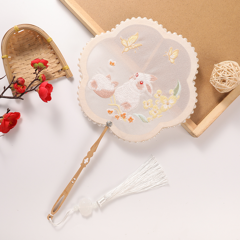 Twin Fly Cranes round fan pearl wrapping Flowers Round Fan pearl wrapping Fish Play Water Round Fan pearl wrapping Cat Round Fan Pearl Bag edge Lunar Rabbit Pearl Wrap side Six Osmanthus Rabbit Pearl Wrap side Six Grinned Rabbit Pearl Wrap edge