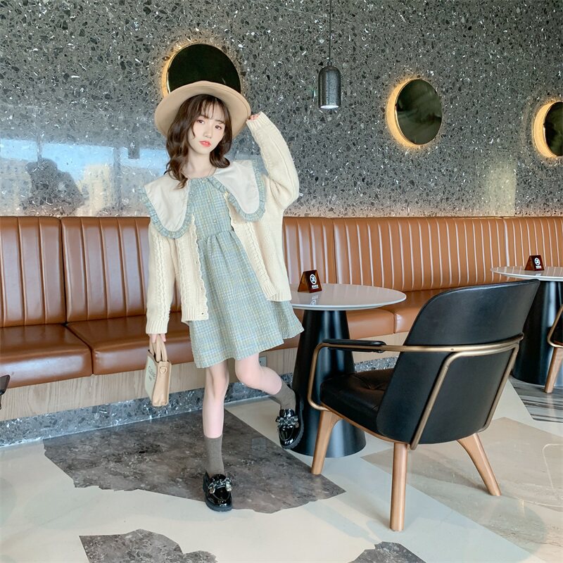 Blue dress coffee color dress blue skirt cardigan coffee skirt cardigan beige knitted cardigan