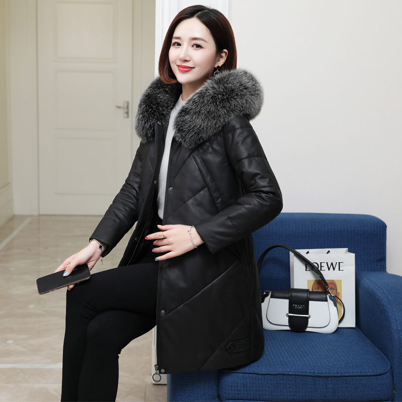 Feather jacket feather female medium-long black Han edition fattened large size sheep fur coat coat coat