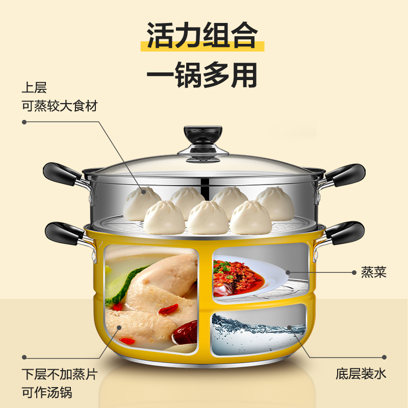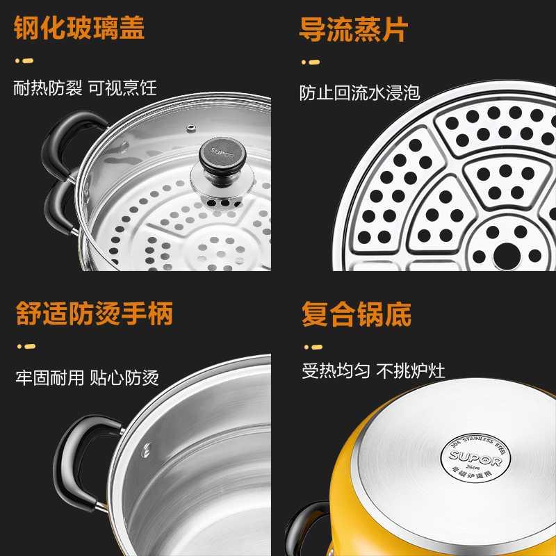 Supor steamer household 304 stainless steel multi-functional steamed fish pot buns small large double-layer thickened multi-layer