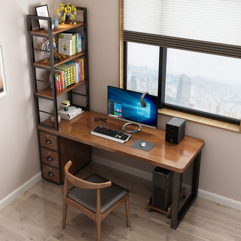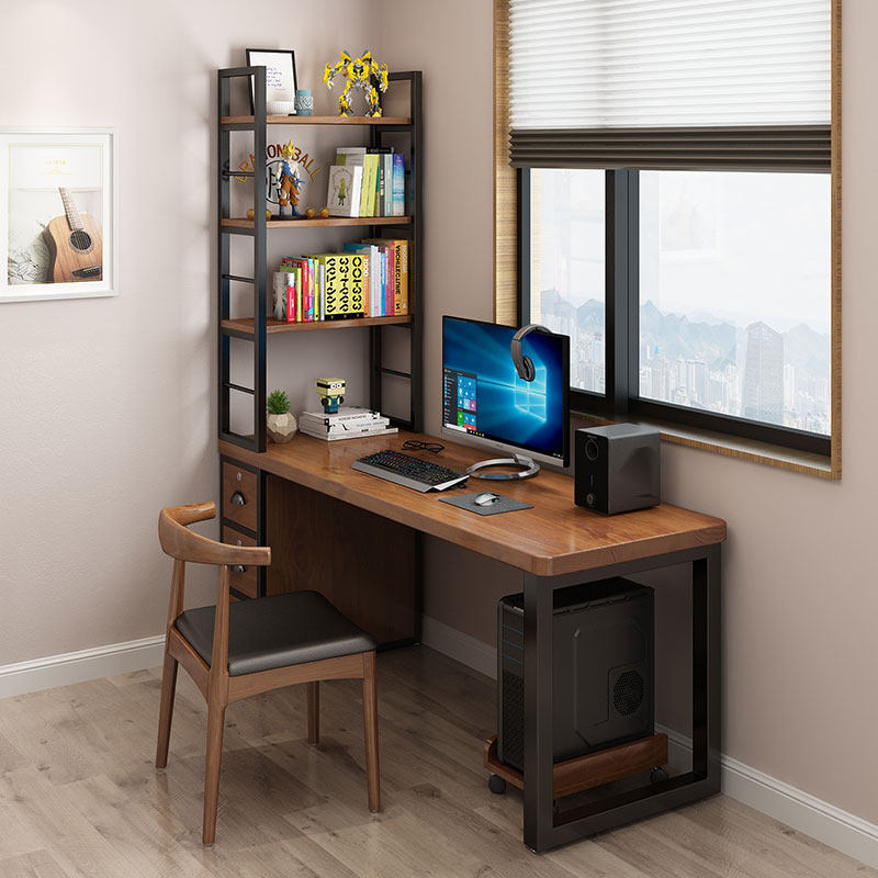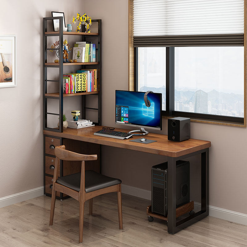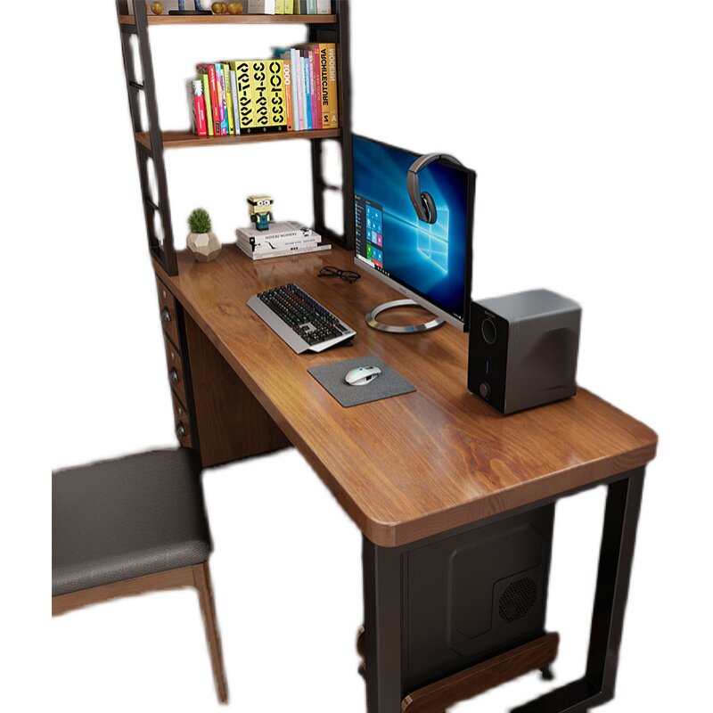 Nordic solid wood desk bookshelf combination computer desktop table home loft office desk bookcase desk one