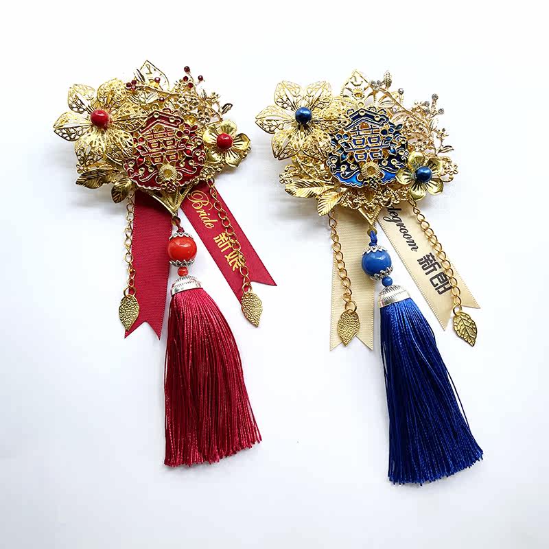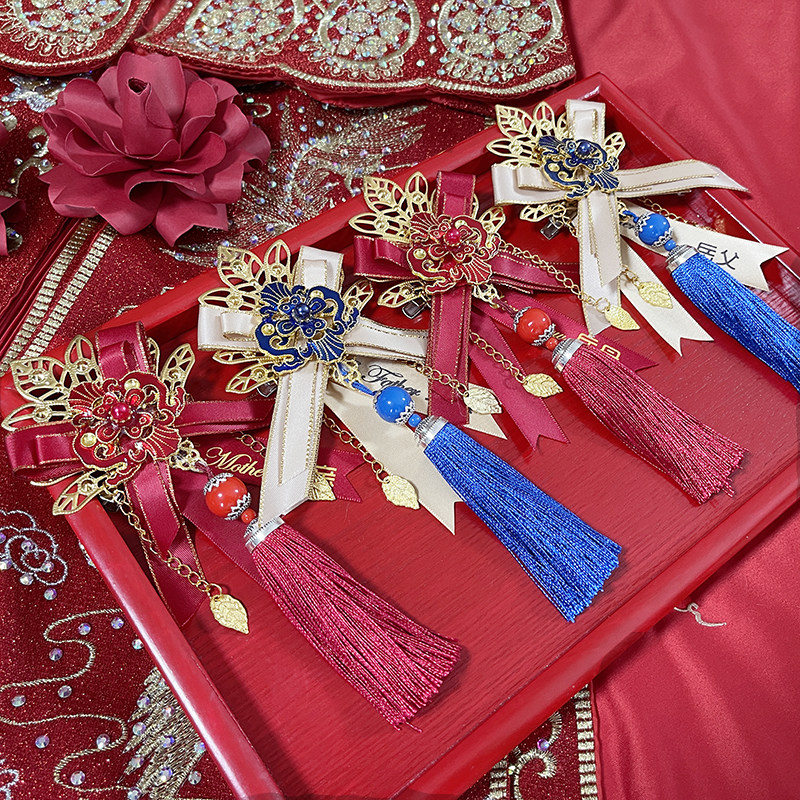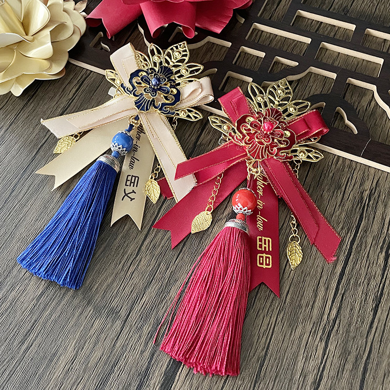 Tea-in-house wedding bride groom bride father mother-in-law's mother-in-law's mother-in-law's mother-in-law, high-end and delicate and luxurious and full of brooch.