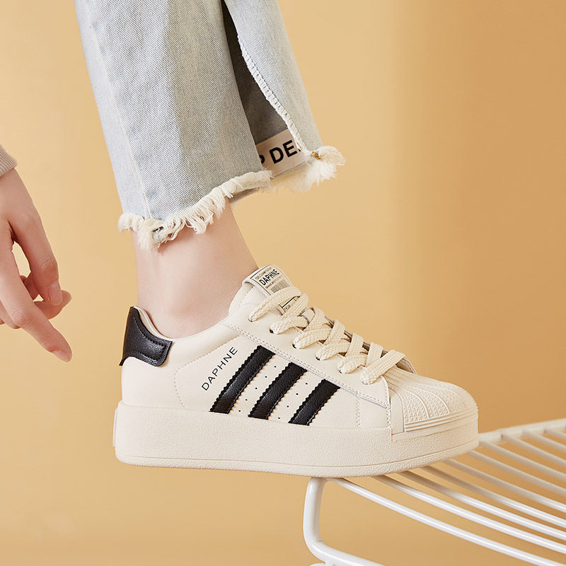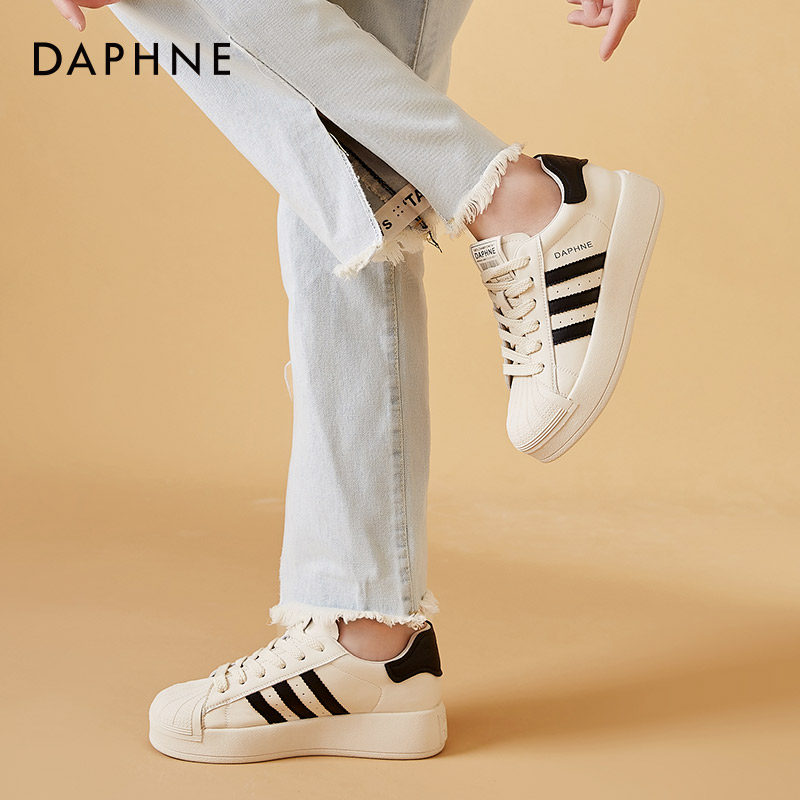 Daphne board shoes women 2022 Summer new retro port taste 100 hitch flat genuine leather shell casual little white shoes