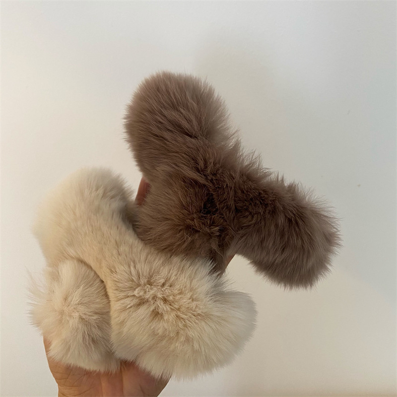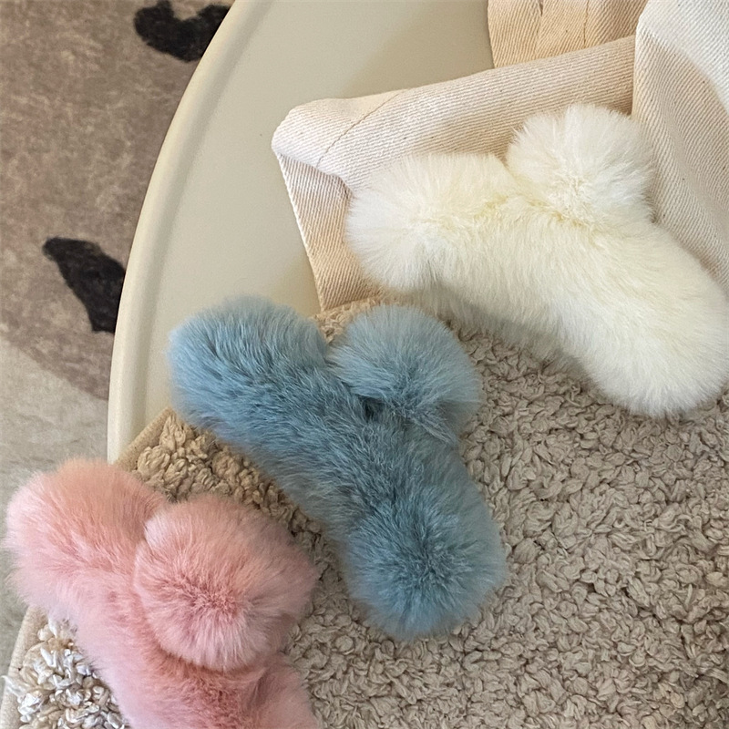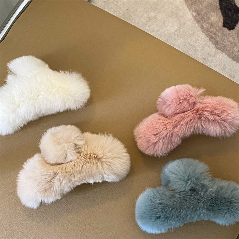 Warm real rabbit fur fluffy plush hair clip clip autumn and winter new cute cream color plush large plate hair clip