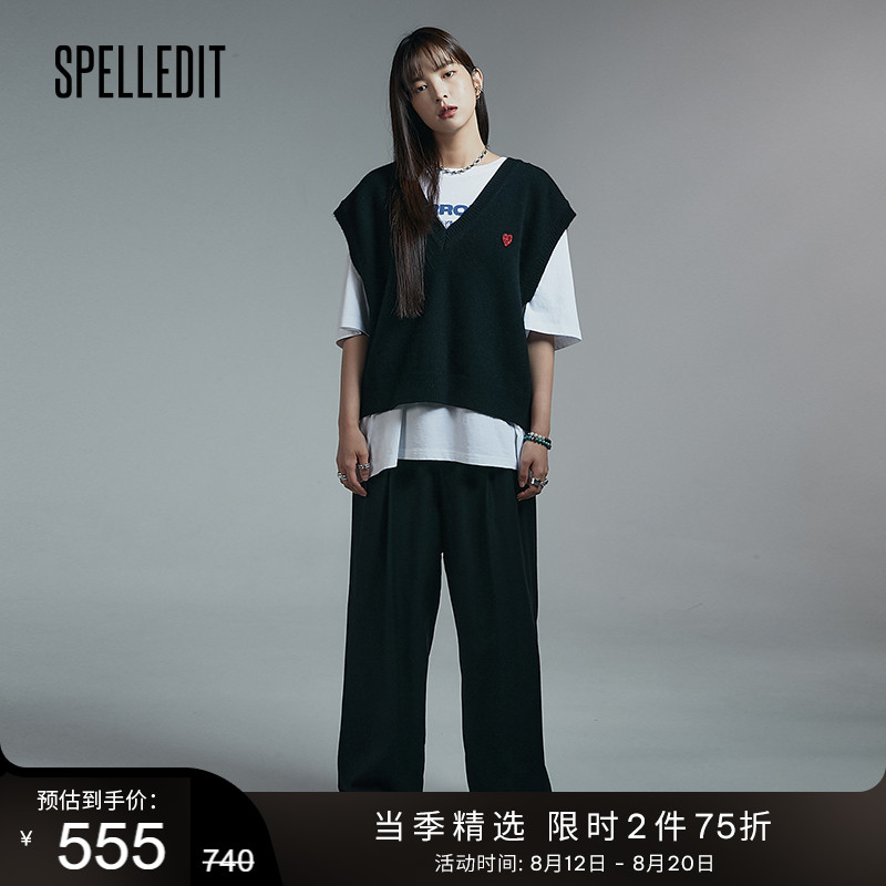 SPELLEDIT Autumn/Winter Mannish Pleated Trousers Loose Wide Legs Casual Straight Trousers Dripping Boyfriend Style