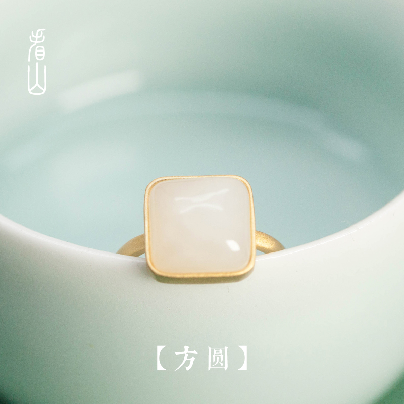 Look at the mountains) Fangyuan) and Tian Bai jade stone ring ring women's pure silver jewelry egg noodles Chinese windy windy hand decorated with new ones