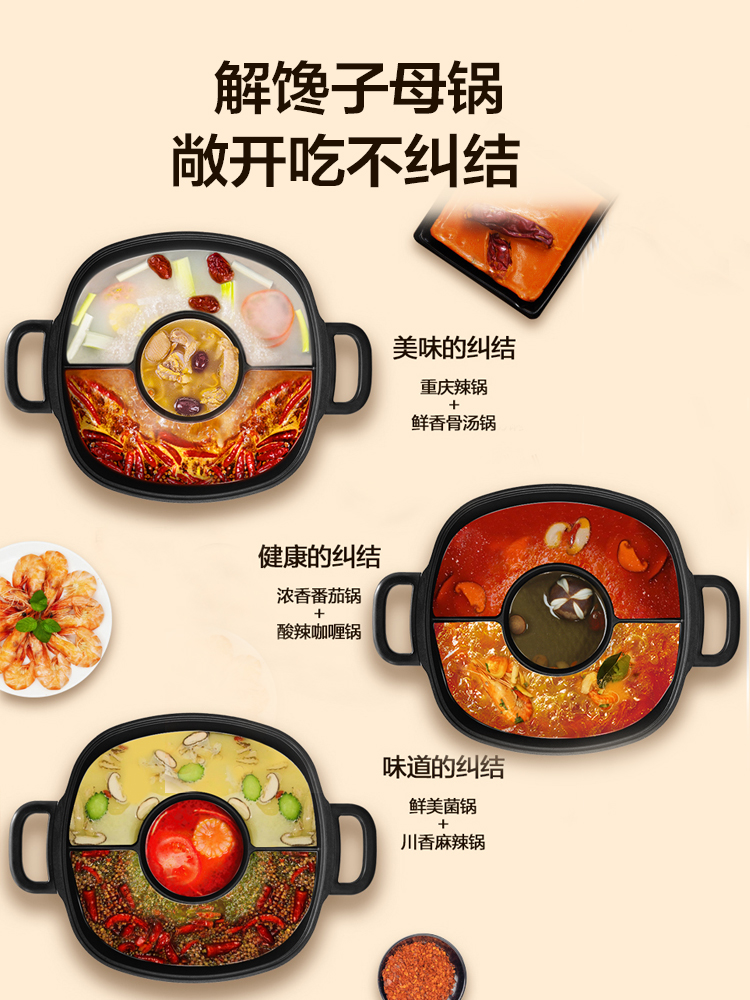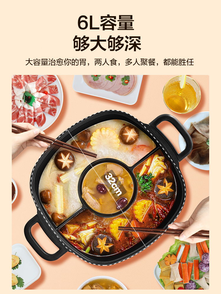 Supoir Yuanyang electric hot pot boiler Home Multi-functional integrated pan Large capacity Three-flavor hot pot special pot electric pot