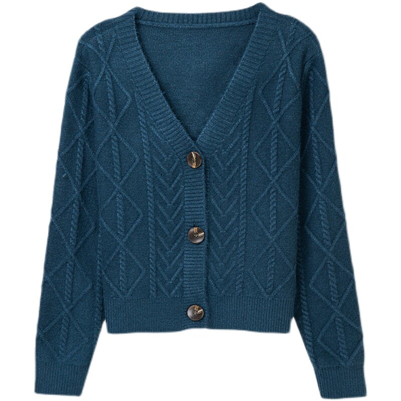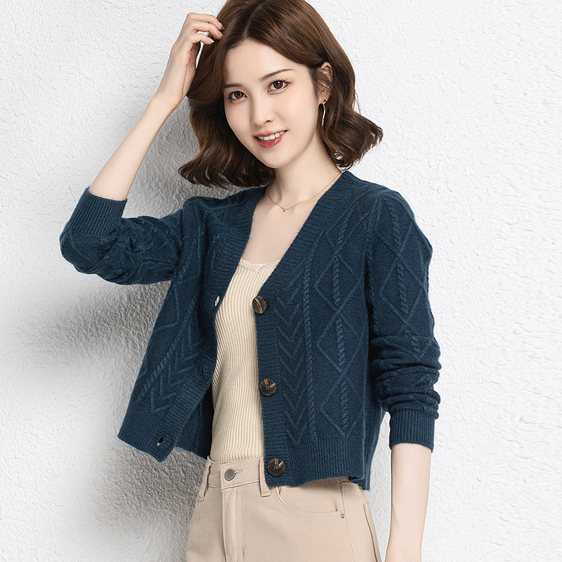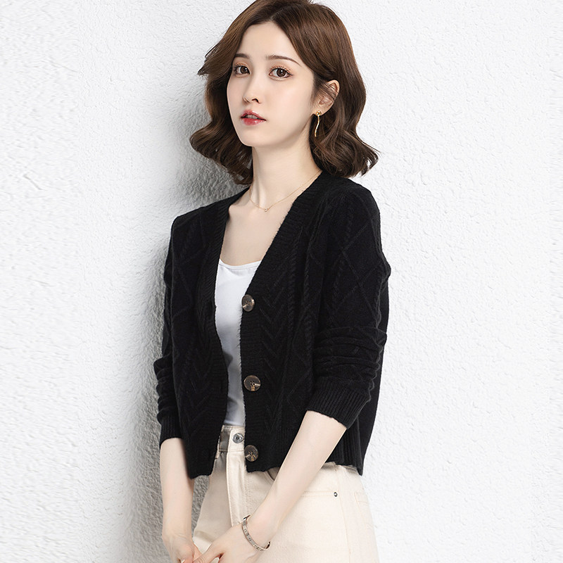 Ordos cardigan women's short spring and autumn outer knitted cardigan small high waist sweater coat autumn