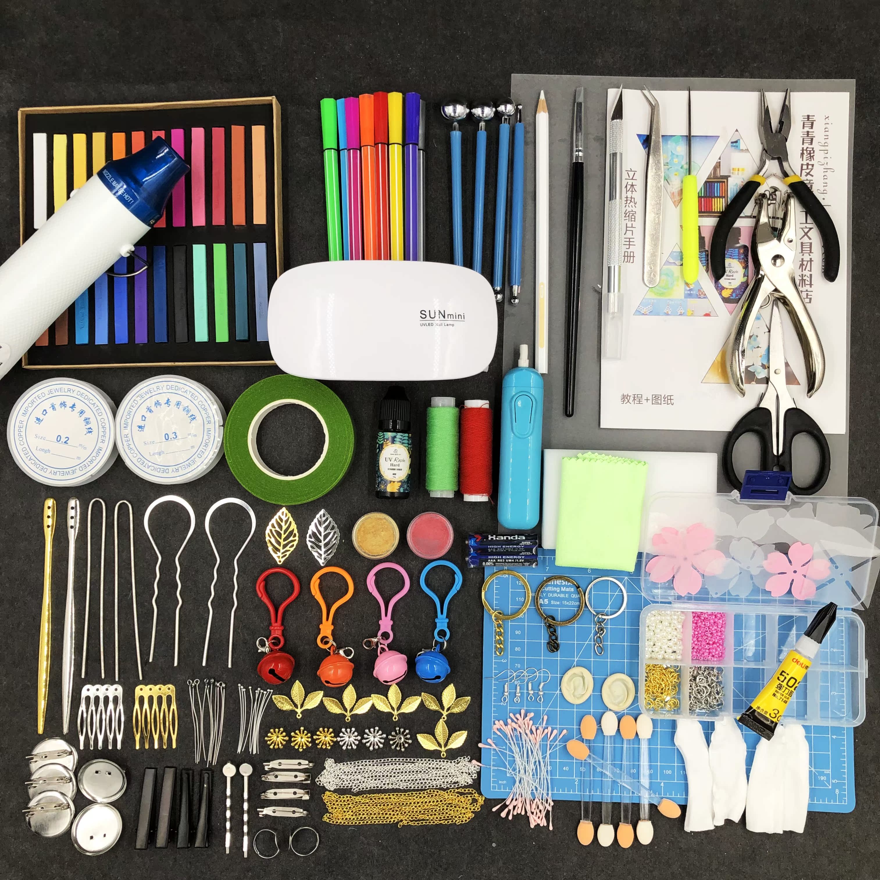Heat shrinkable sheet DIY set three-dimensional flower hairpin keychain antique jewelry accessories novice bag hot air gun material bag