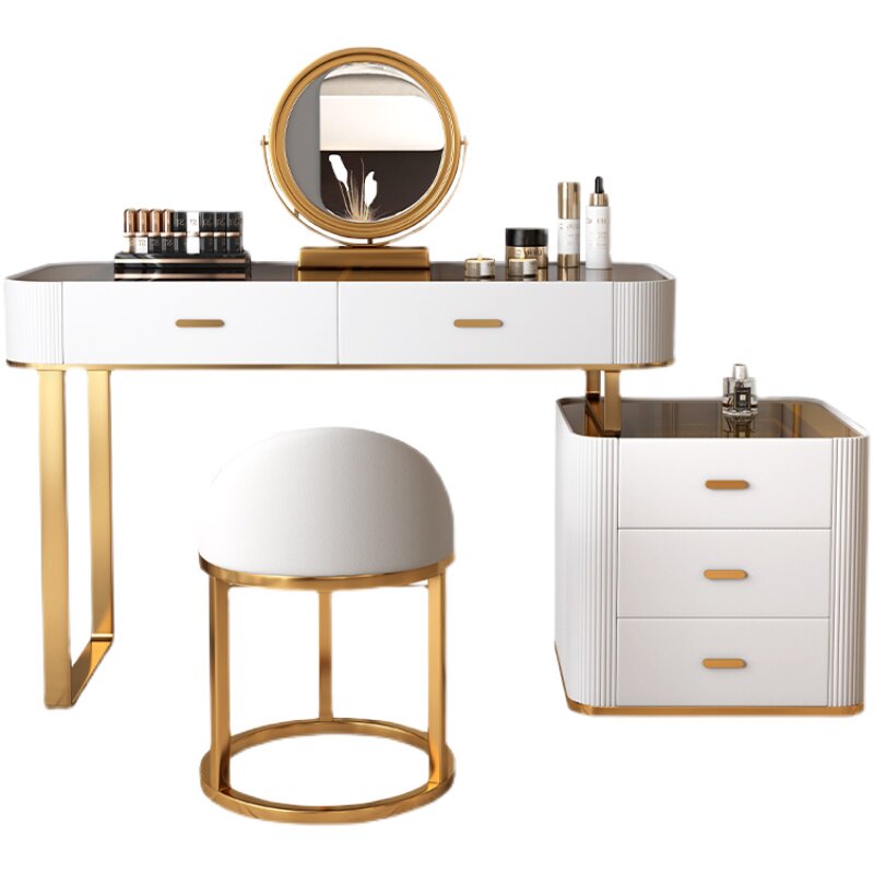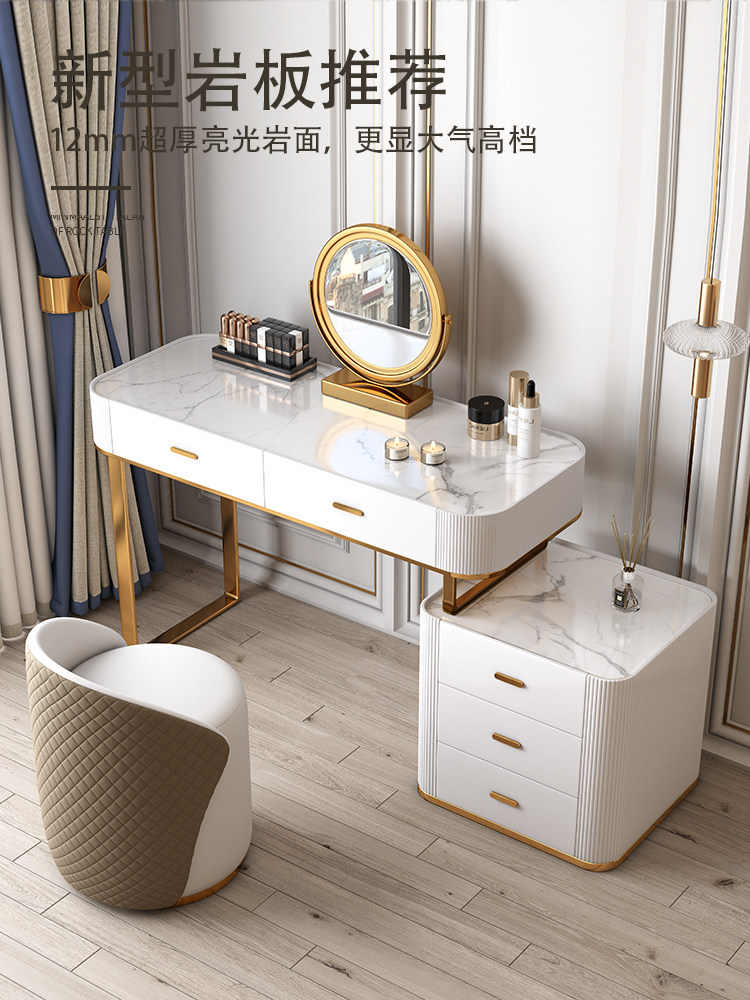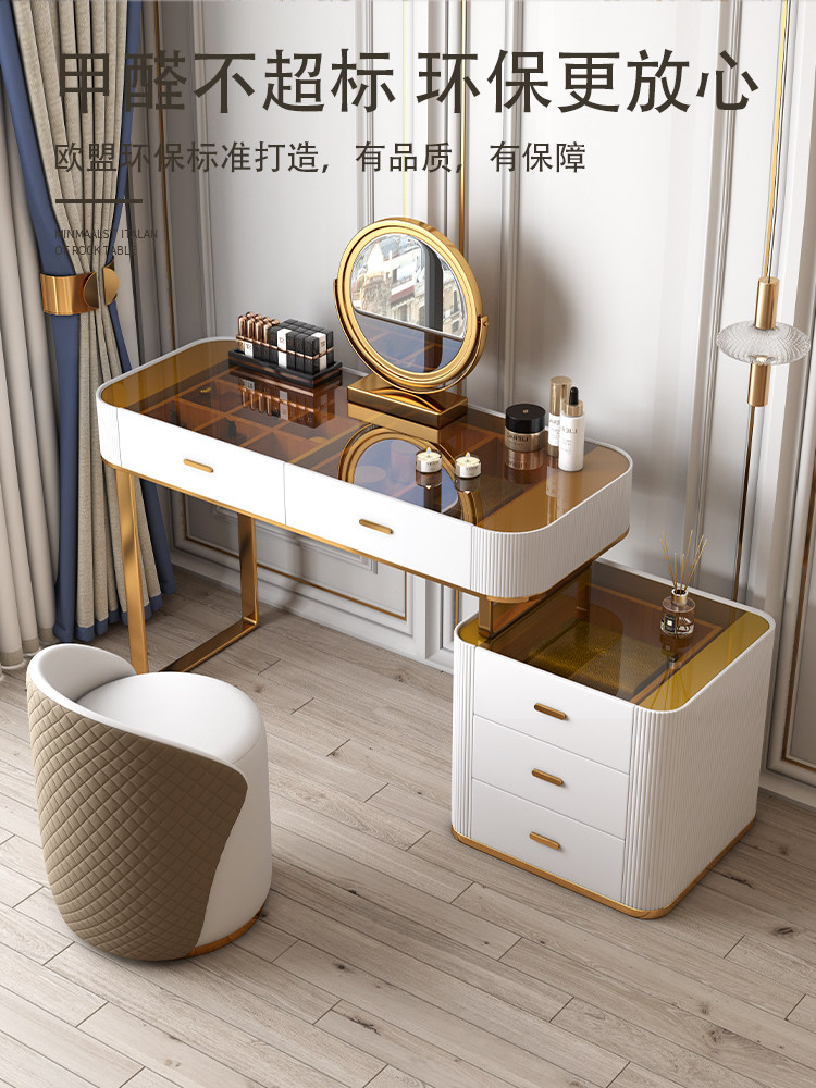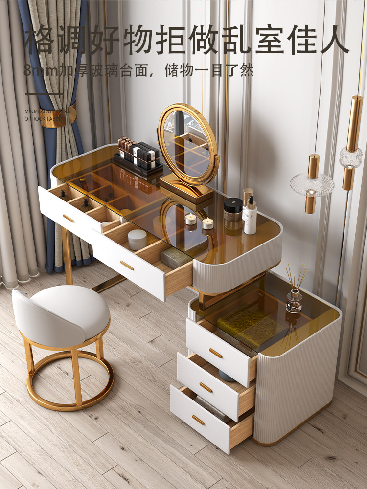 Light Extravagant Glass Makeup Bench Small Family Type Bedroom Make-up Bench Modern Minima Net Red Makeup Table Containing Cabinet Incorporated Into The Body