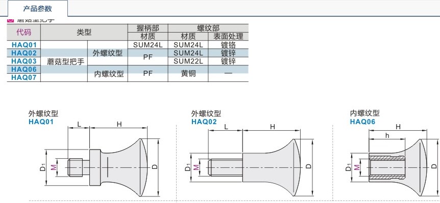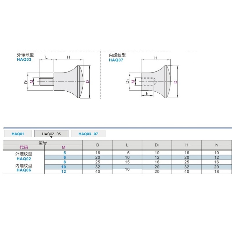 HAQ02-M5 external thread HAQ02-M6 external thread HAQ02-M8 external thread HAQ02-M10 external thread HAQ02-M12 external thread