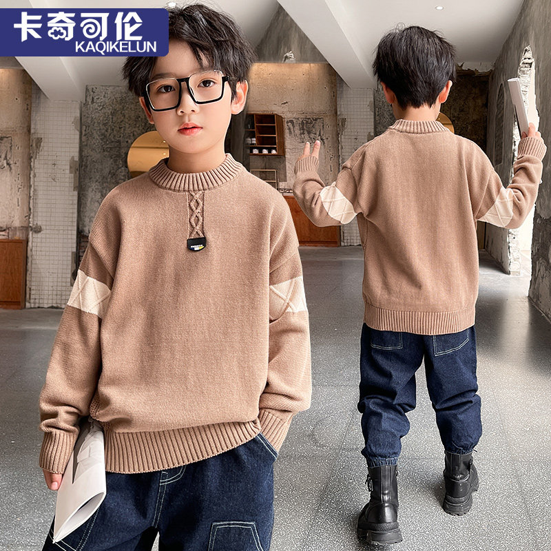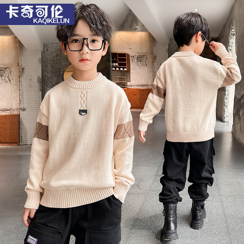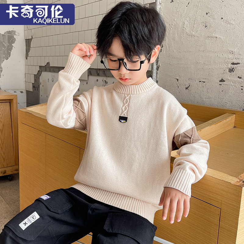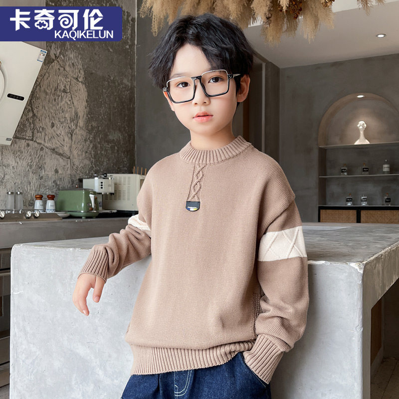 Boy sweater autumn winter 2022 new plus suede thickened children beating bottom-knit cardiovert children pure cotton linen clothing foreign palate