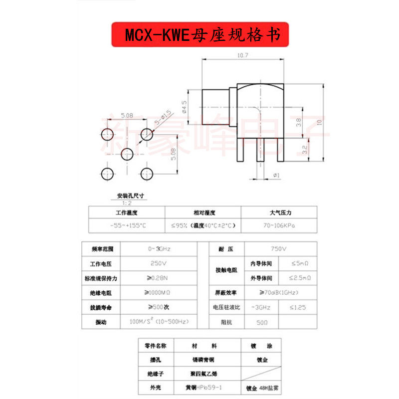 MCX-KE-JE female seat elbow right angle female antenna RF seat MCX-KWE four-legged PCB board socket