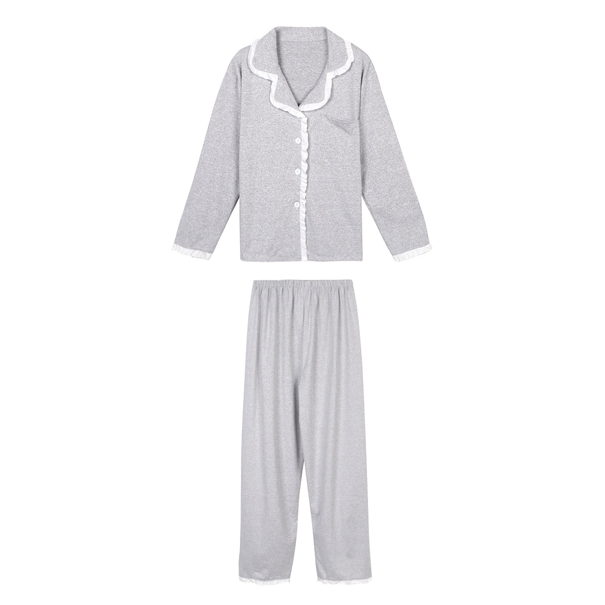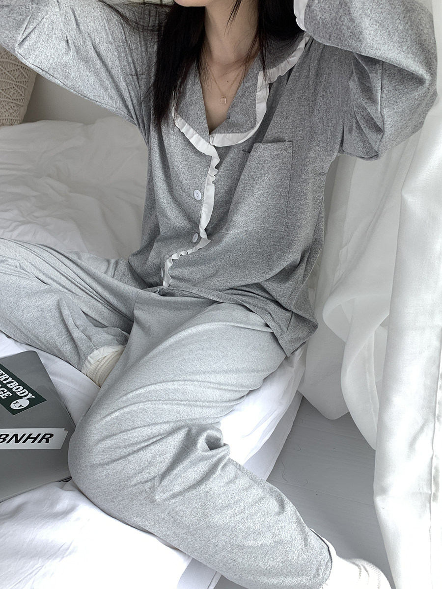 Korean sister ~ simple day miscellaneous wind sweet lace edge spring and autumn comfortable long sleeve suit loose household clothing