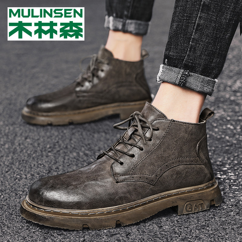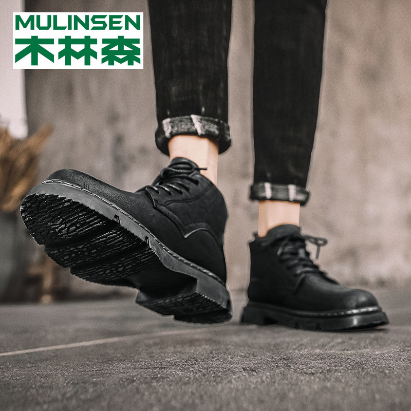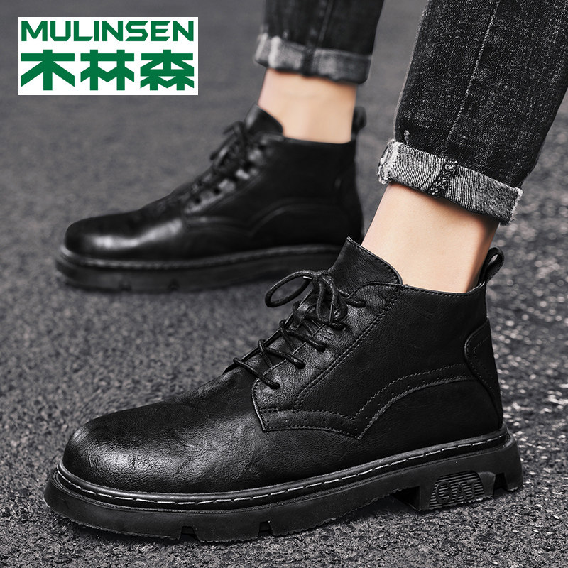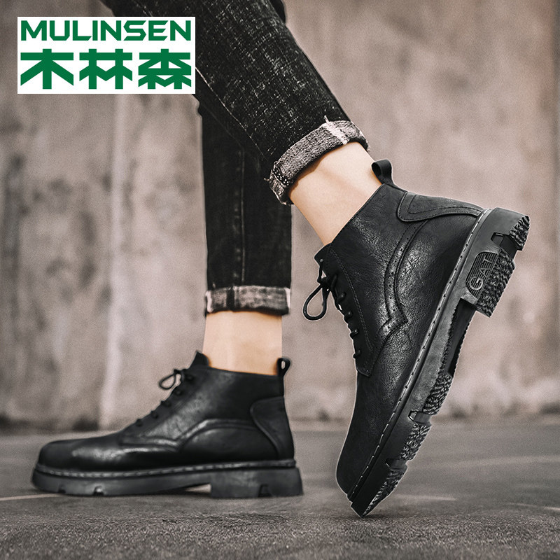 Mulinsen Martin boots men's winter high-top tooling boots trend leather boots plus velvet warm cotton shoes mid-tube snow boots