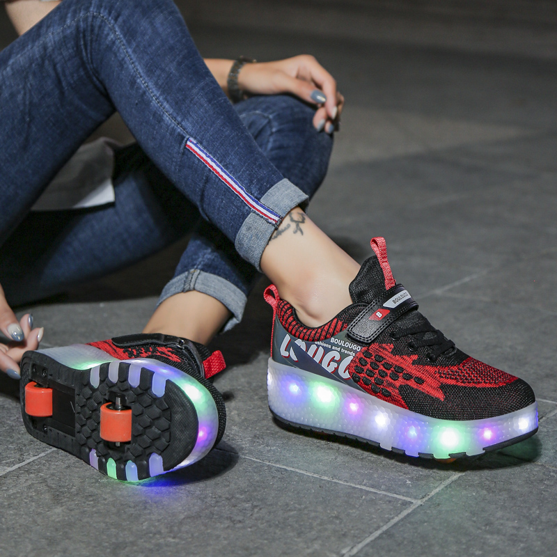 Storm Shoeshoe Male Student Deformed Shoes Male And Female Children Double Single Wheels Generation Step Pulley Adult Children Burst Shoelace Wheel Shoes