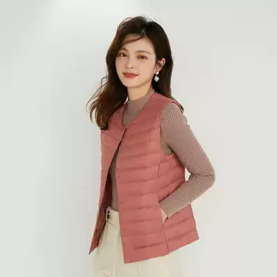 Autumn and winter 2021 New thin down jacket women's white duck down short round neck down vest liner jacket