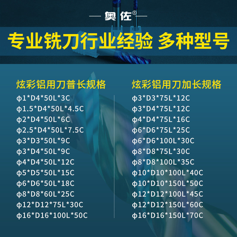Orzo high-gloss aluminum knife colorful milling cutter 60 degree 3-blade tungsten steel alloy U-shaped groove aluminum rough skin CNC lengthened single-edged