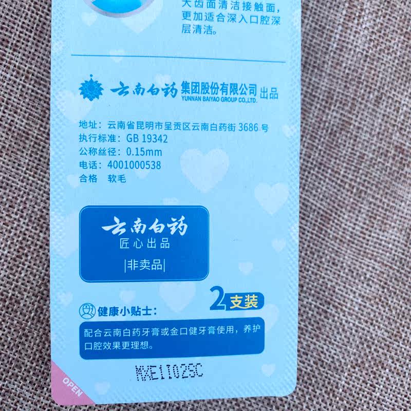 Yunnan Baiyao Shui Che Clean Couple Toothbrush 2 Pack Soft Bristles x One Bite