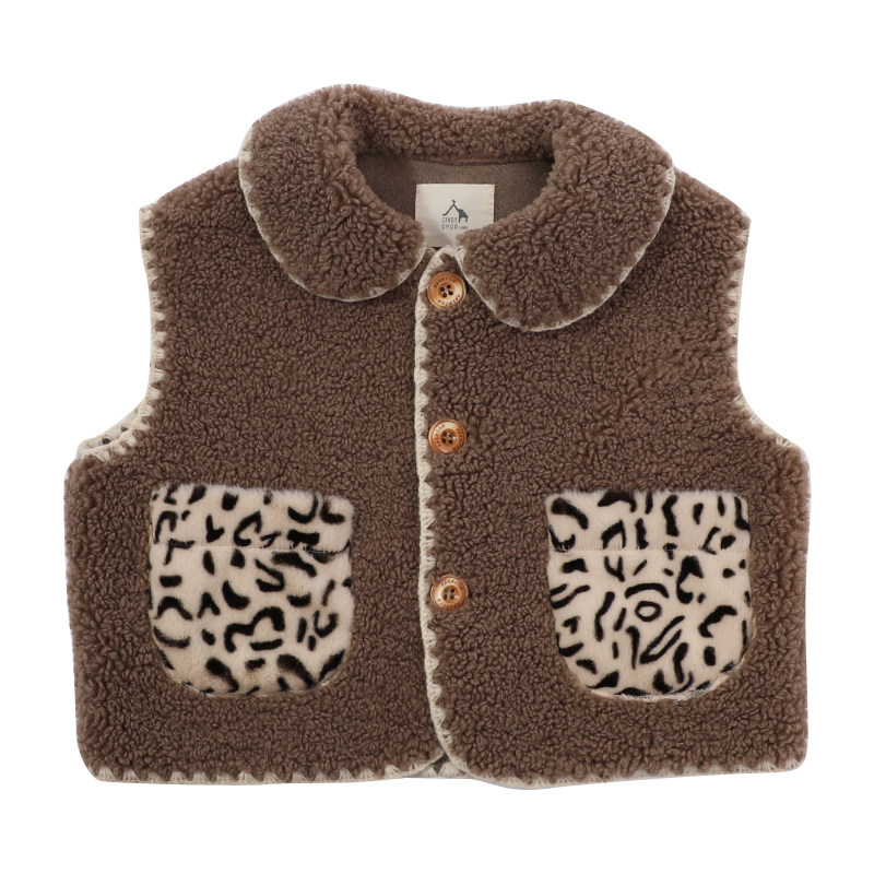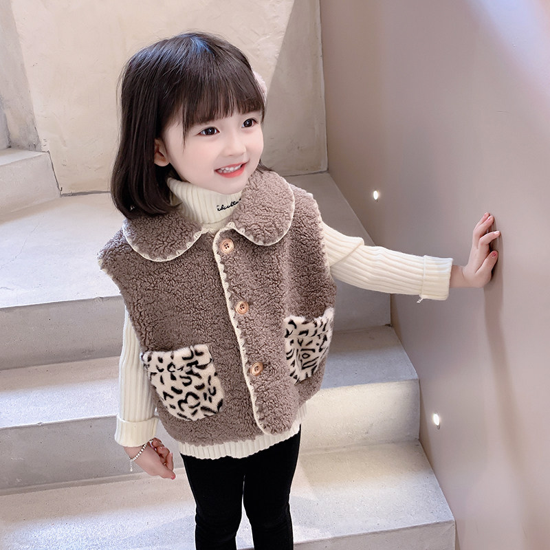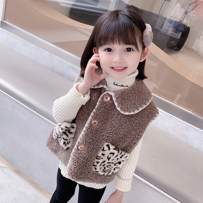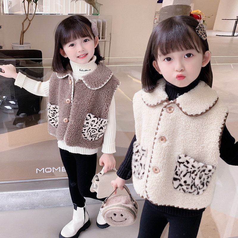 Girls lamb fur one-piece vest outer wear female baby spring, autumn and winter vest children's waistcoat girl Western style