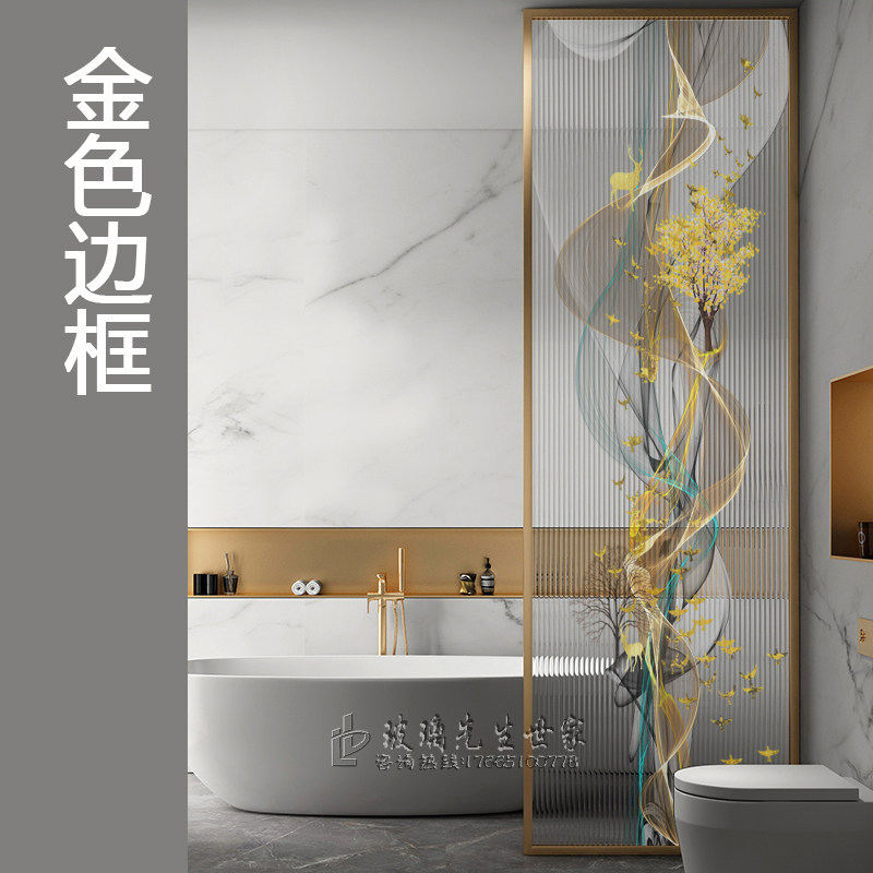 Steel Chemical Art Glass Partition Modern Living Room Genguan Make-up Room Dry Wet Area Frosted Light And Luxurious Decorative Screen Customisation