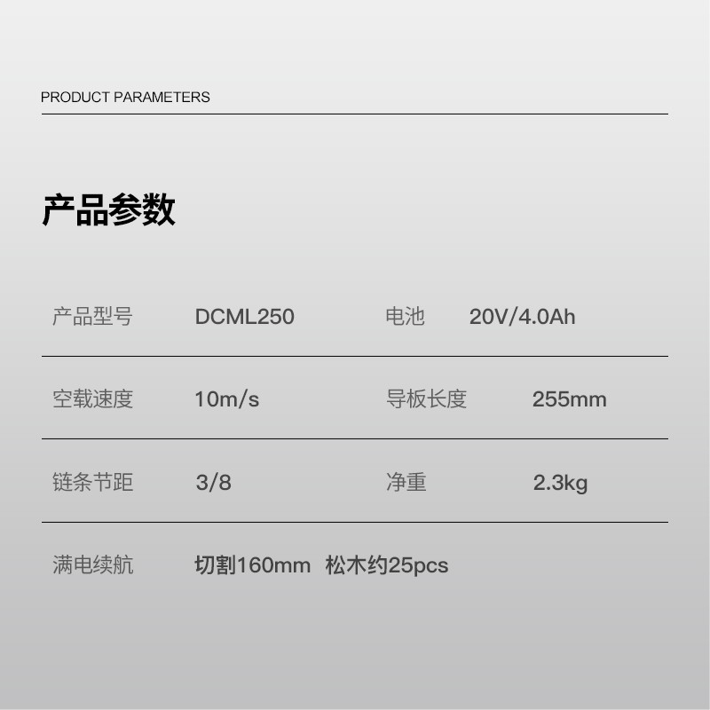 DCML250 electric chainsaw (bare muscle) DCML250 electric chainsaw (single electric 4 0AH) DCML250 electric chainsaw (double electric 4 0AH) DCML2