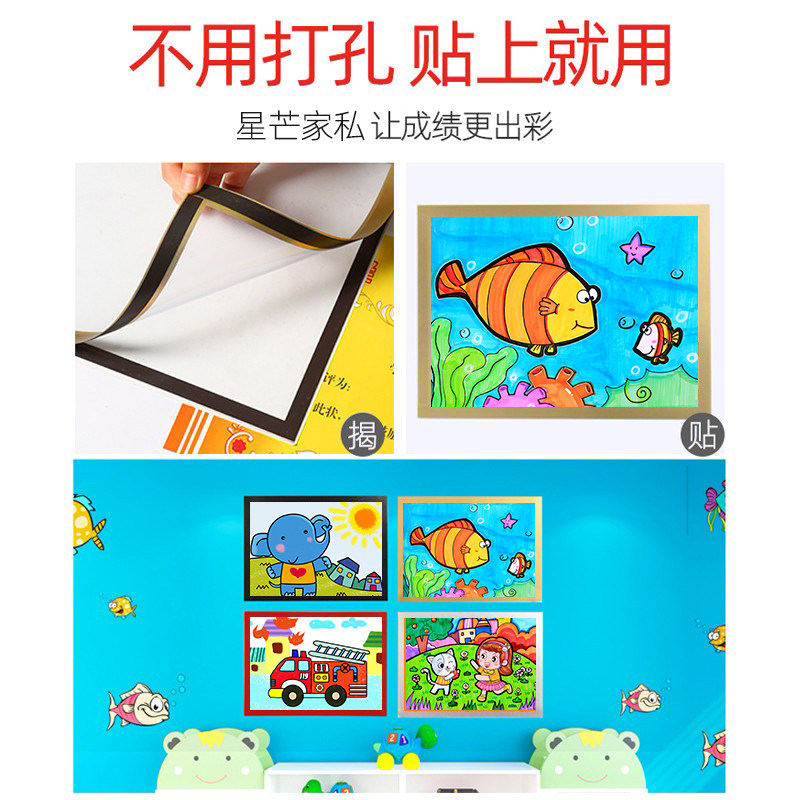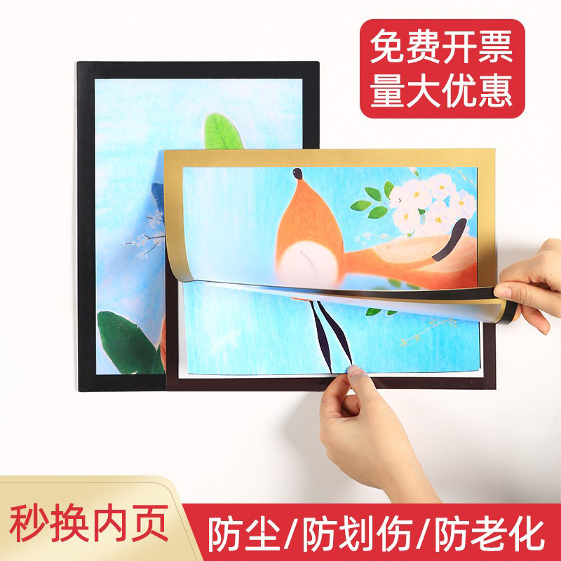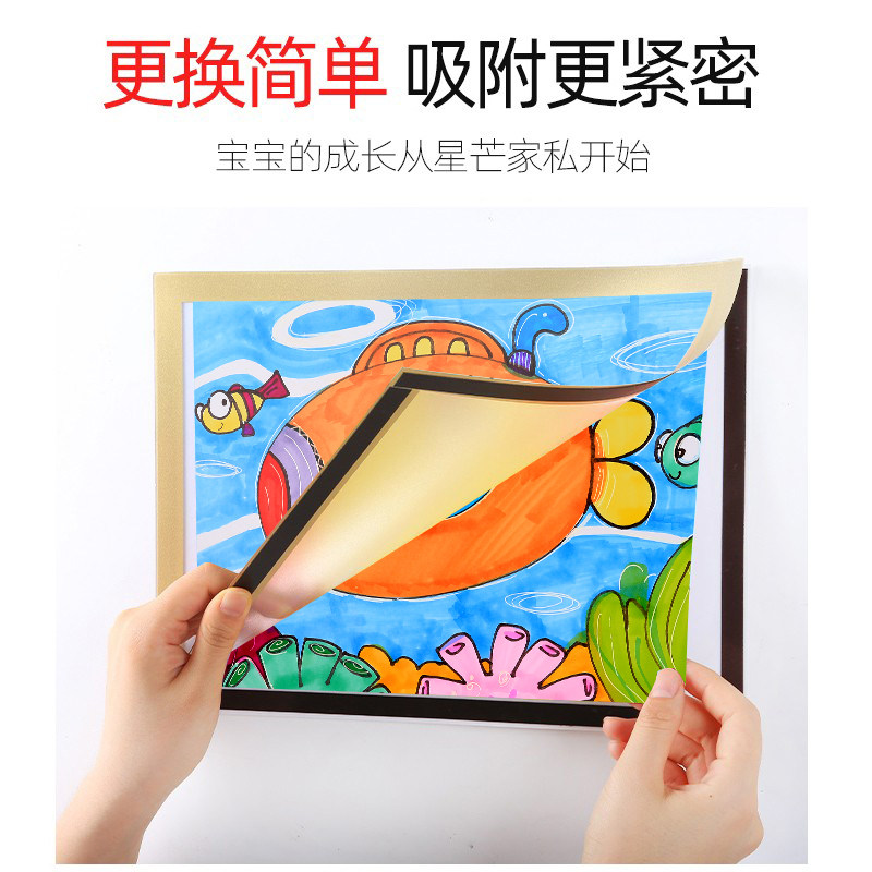 Magnetic picture frame mounting child photo frame hanging wall free of punch magnetic attraction wall sticker Award-shaped containing display like frame a4A3