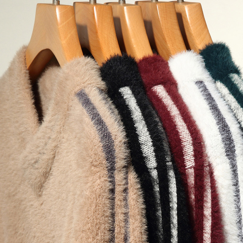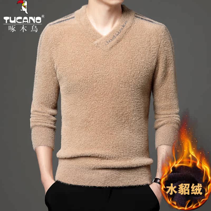 Woodpecker winter fashion mink velvet V-neck sweater men can wear outside plus velvet thick thermal underwear jacket large size