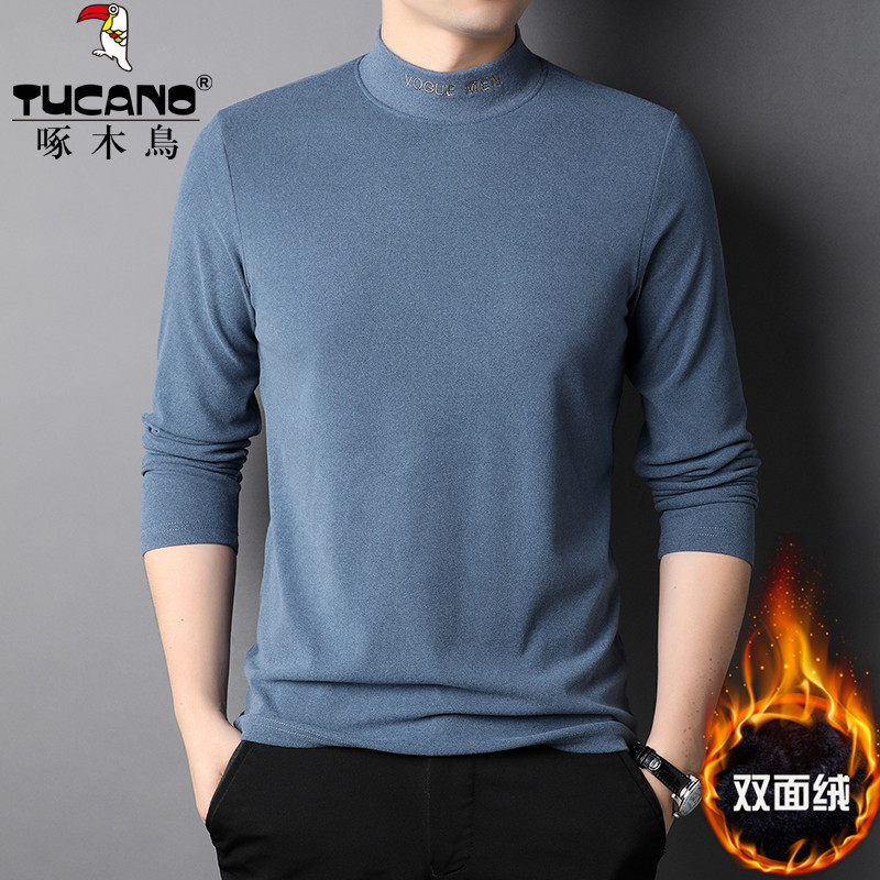 Woodpecker autumn and winter men can wear heat jackets fashion casual semi-high collar double-sided fleece bottoming shirts trend