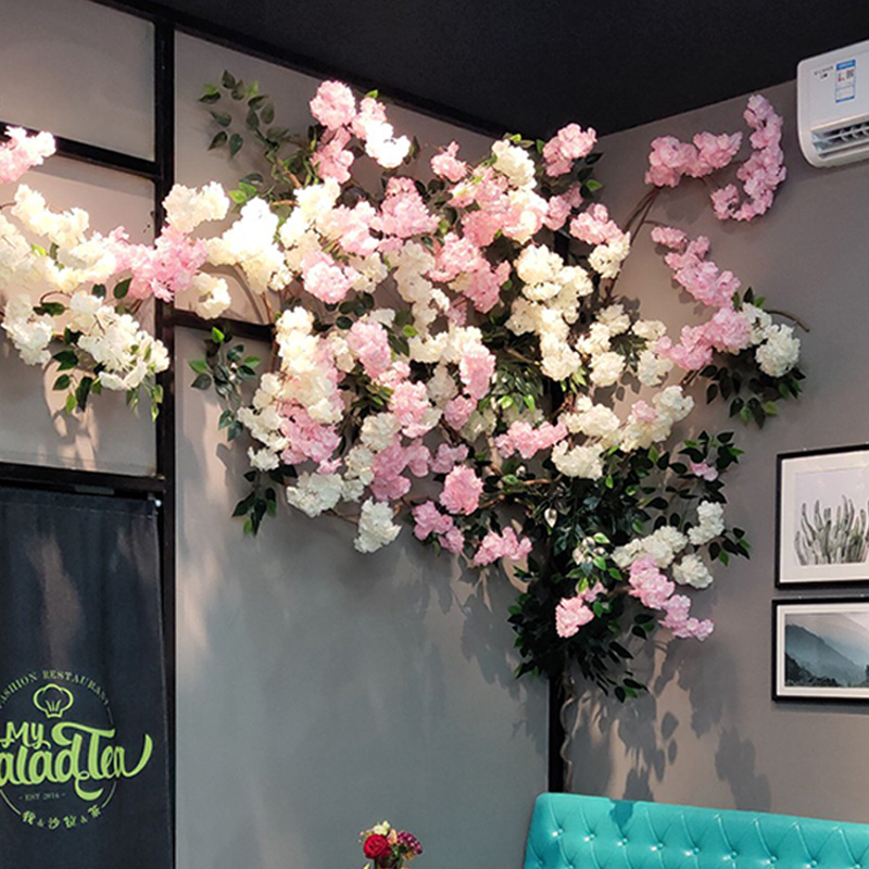 Cherry Blossom Tree Emulated Tree Air-conditioning Duct Shelter of fake flower vines Indoor Decoration Living Room Ceiling Mesh Red Background Flower Wall