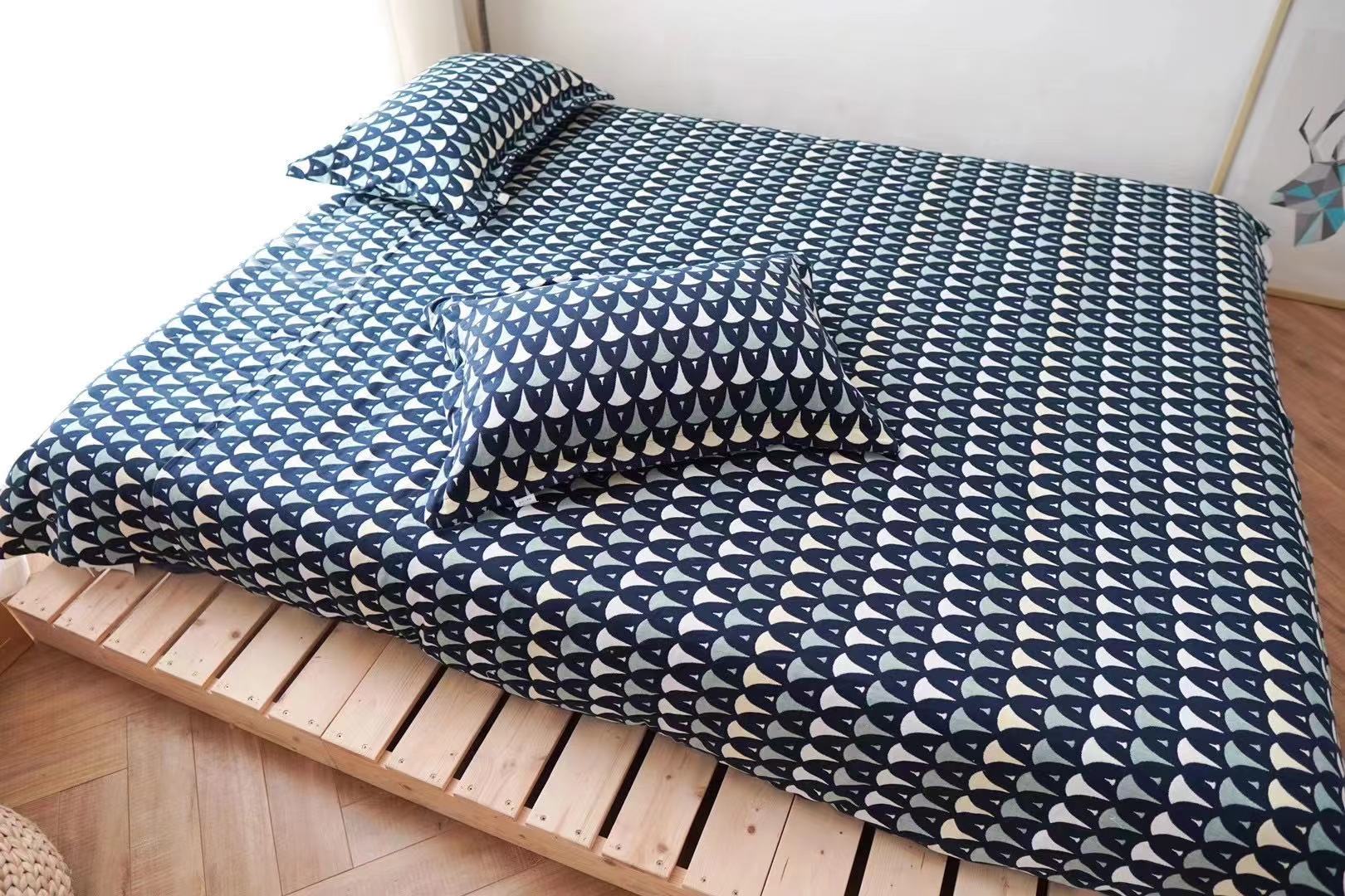 Class A three-layer pure cotton gauze pleated gray star yellow star big double bed sheet blue star red star night night tatami custom