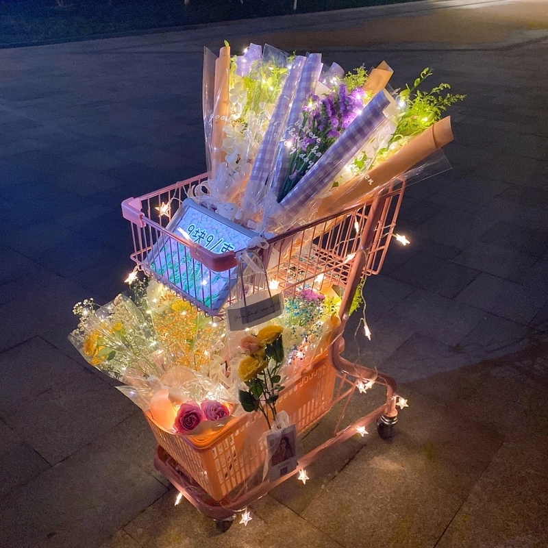 Pink Teenage Girl Hearts Photo Props shopping cart Net Red pendulum Stall Selling Flower Cart Double Supermarket Home Small Cart