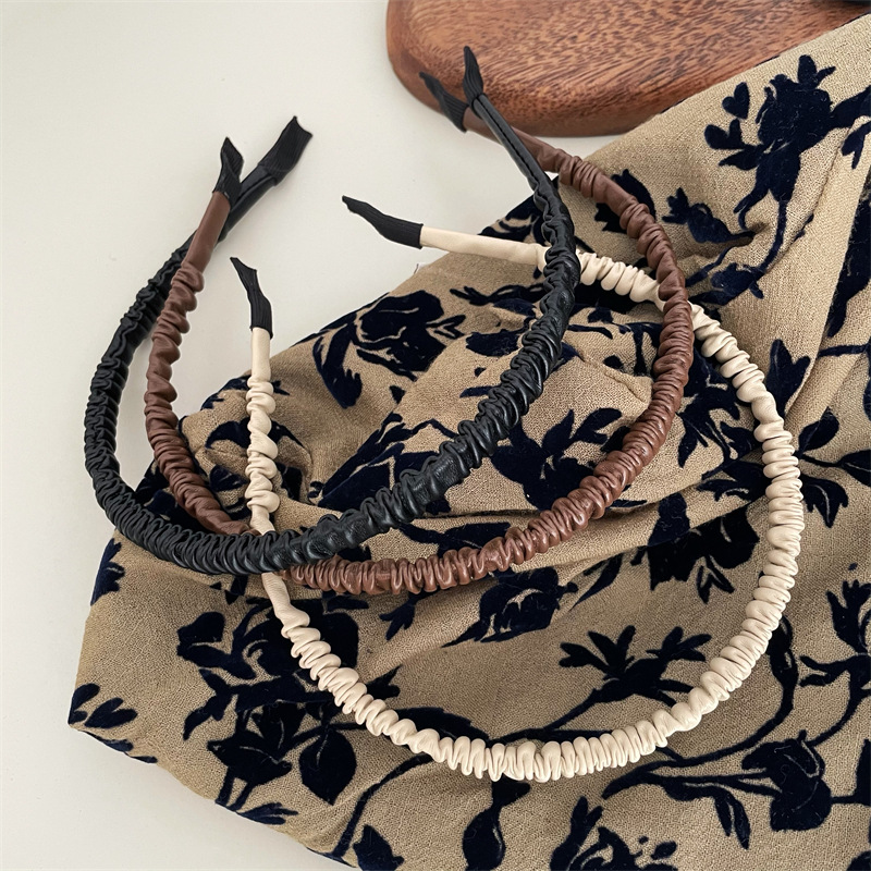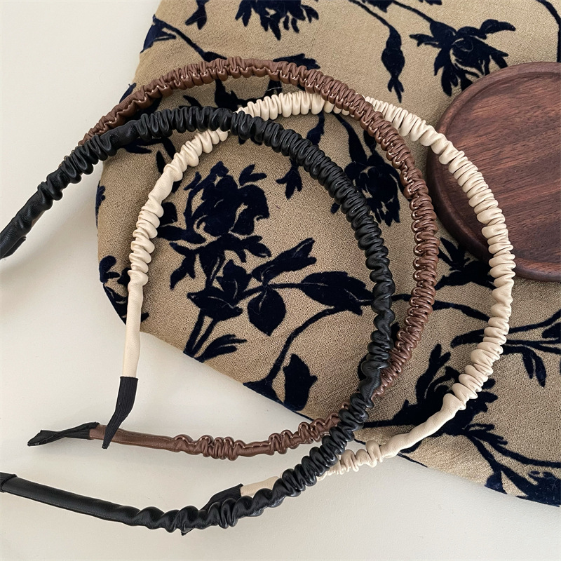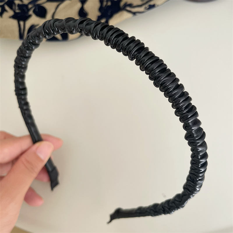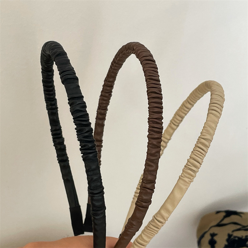 Korean version of ins retro folded small intestine thin version PU imitation leather headband simple and fresh to go out with travel hairpin
