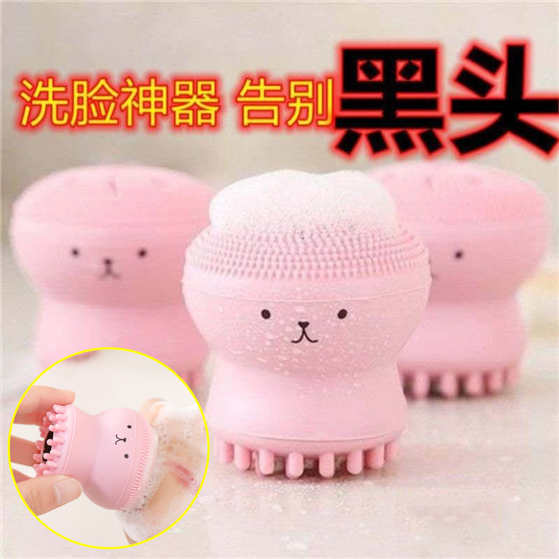 Korean cute small octopus face wash brush cleansing instrument massage household double-sided silicone facial pore cleaning artifact
