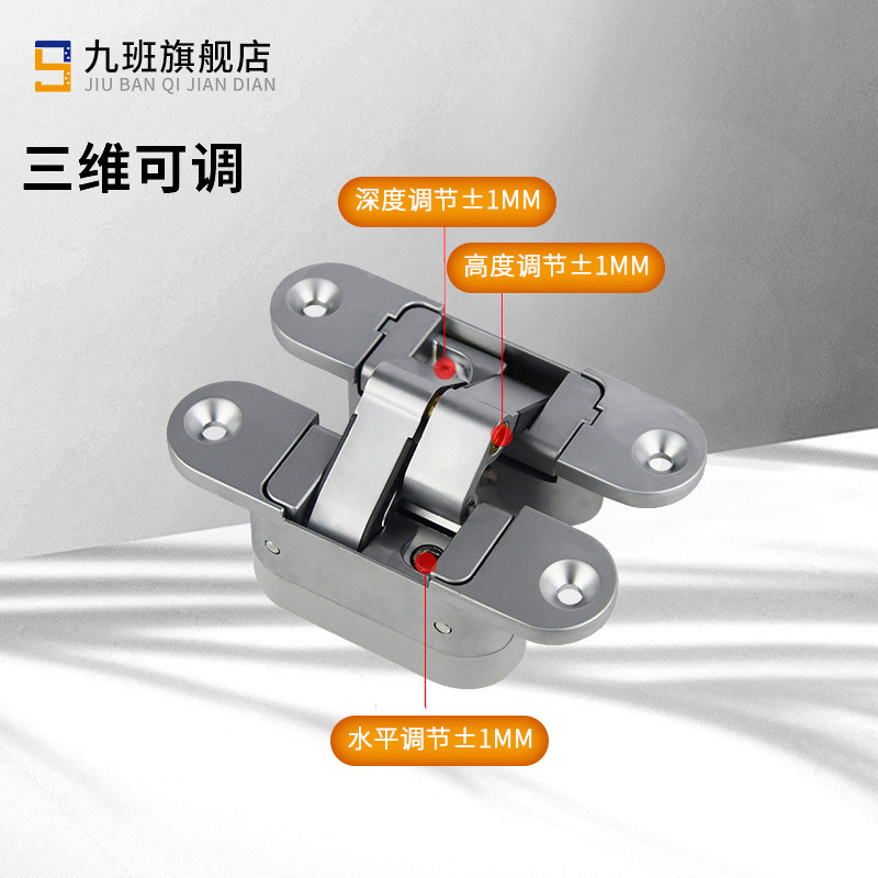 Invisible door hinge three-dimensional adjustable 180-degree flat open folding door background hidden wooden door hinge hidden cross hinge