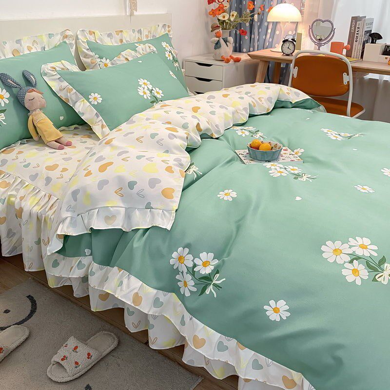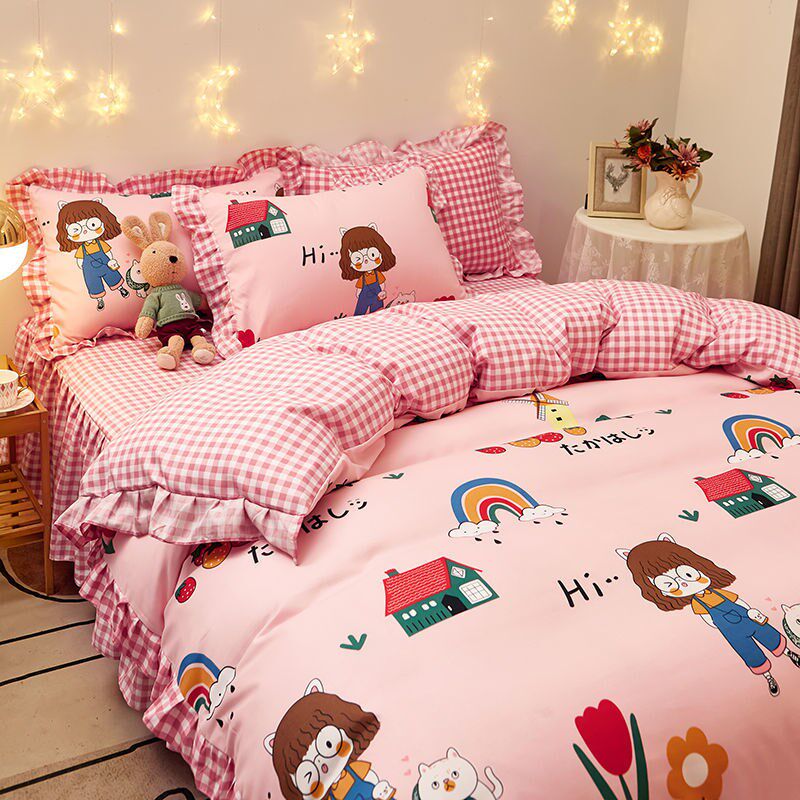 Internet celebrity four-piece set 2021 new version princess wind three-piece bedding set thick skin-friendly brushed bed sheet quilt cover