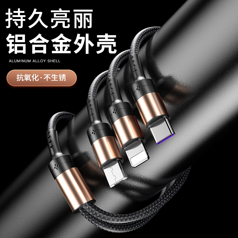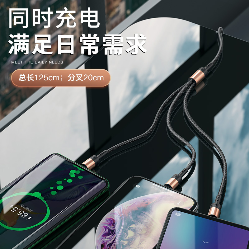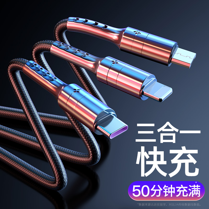 Charger One drag triple quick charge multi-head on-board multifunction car charge home applicable Huawei Apple iphone Xiaomi Xiaomi Android phone Three-wire lead 5a Super flashover data line Three-in-one