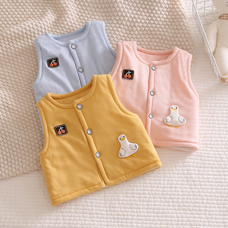 Male and female baby cotton waistcoat open outside wearing spring autumn and winter style Camshoulder baby with small vest plus cotton warm and thin clip