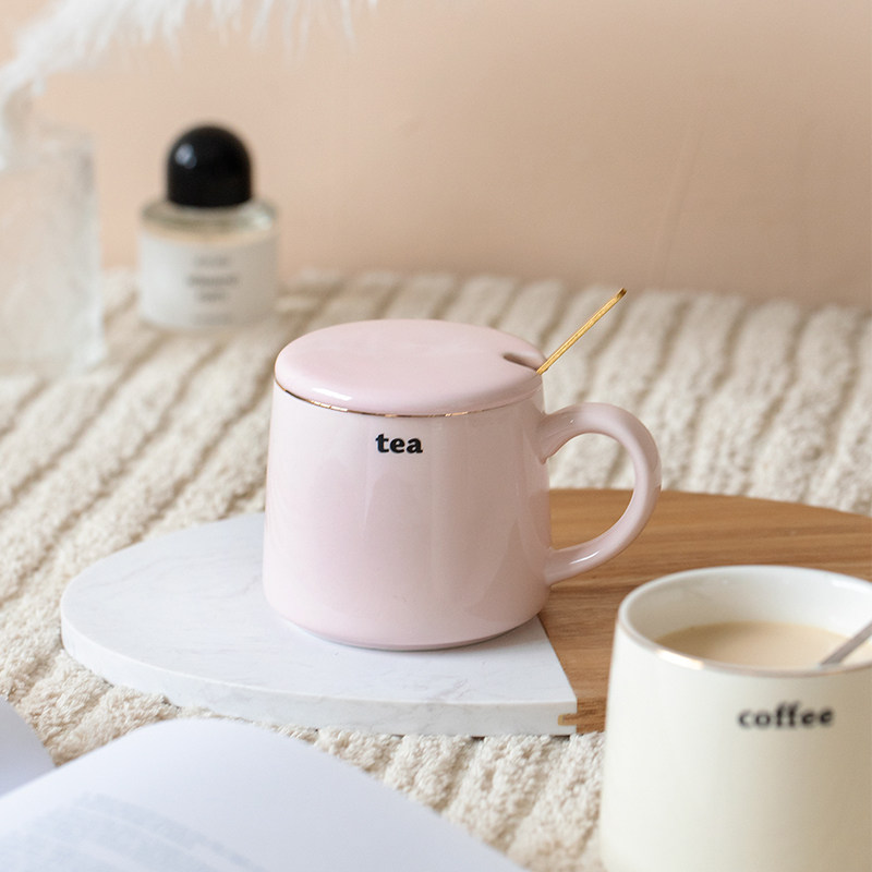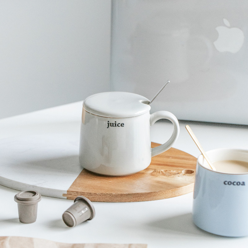 Simple ceramic cup with lid spoon mug female couple coffee cup boy water cup office breakfast cup home