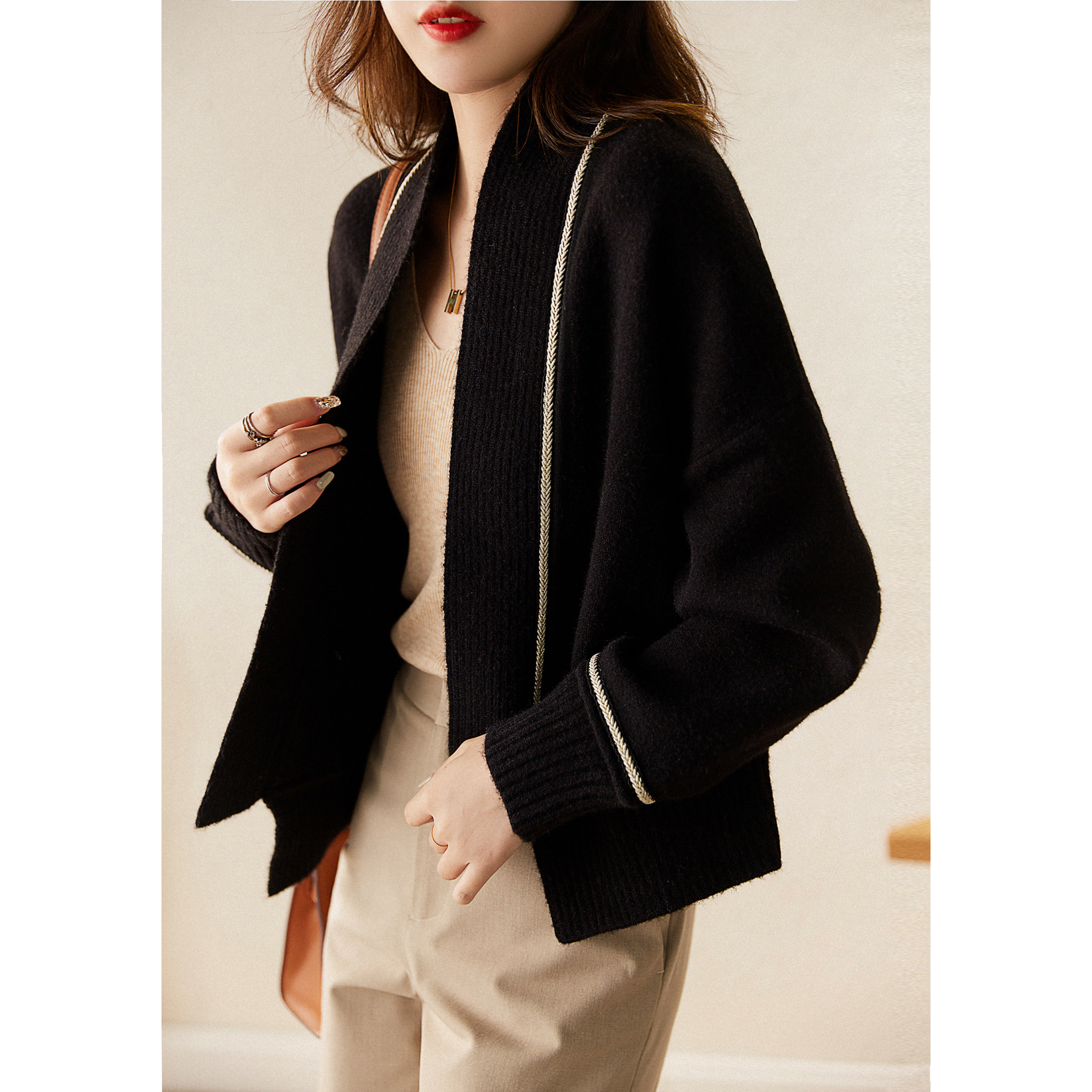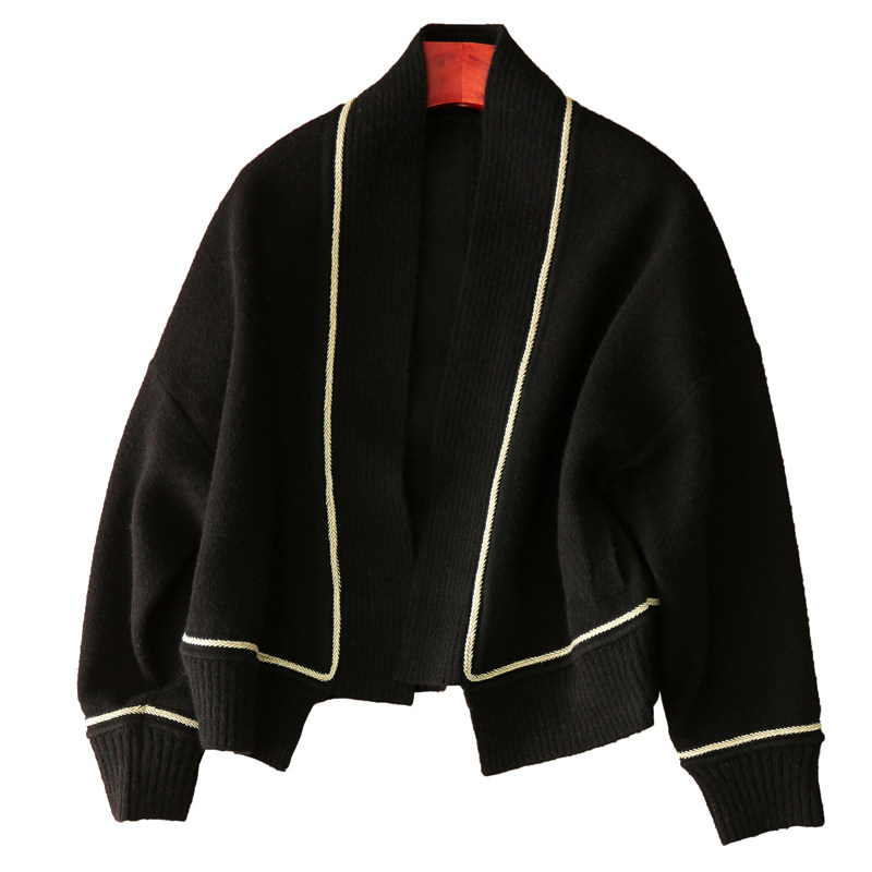 Style "Grandma Shirt" Lazy No Buckle Knit Cardiovert Loose Bat Sleeves Slim ELZY45861