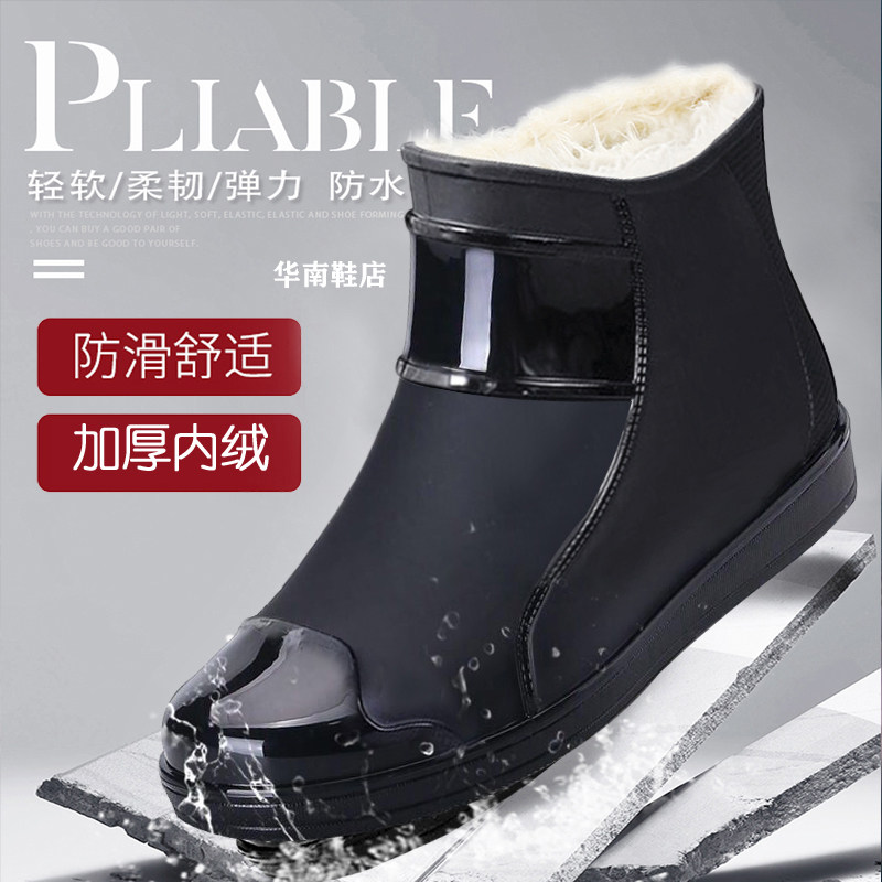 Fashion rain boots men's plus velvet non-slip wear-resistant tide rubber shoes summer lightweight fishing rain boots men's soil waterproof short tube water shoes