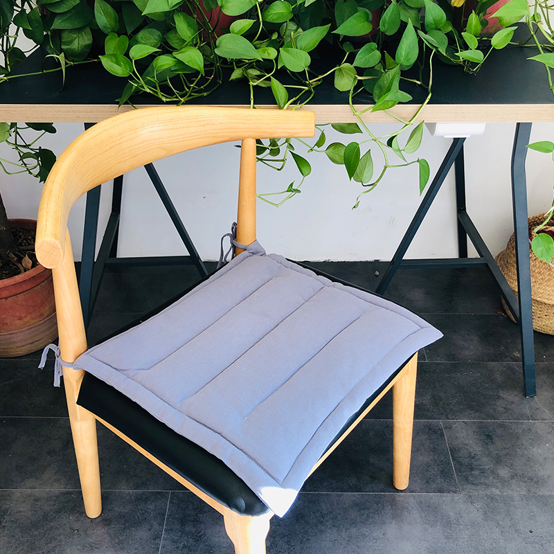 Thin section simple solid color breathable cotton and linen office tea table cushion dining chair cushion cushion four seasons with rope can be customized